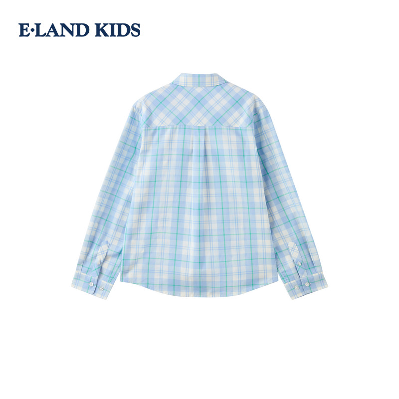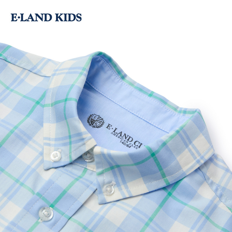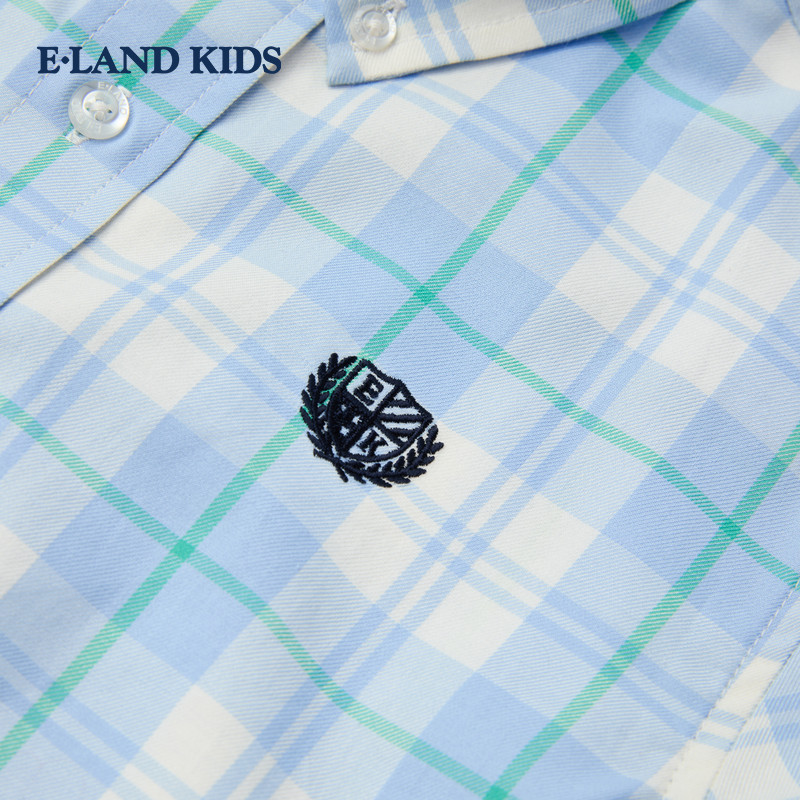 【100%棉】eland kids衣恋童装男童衬衫25年冬新品格纹刺绣上衣