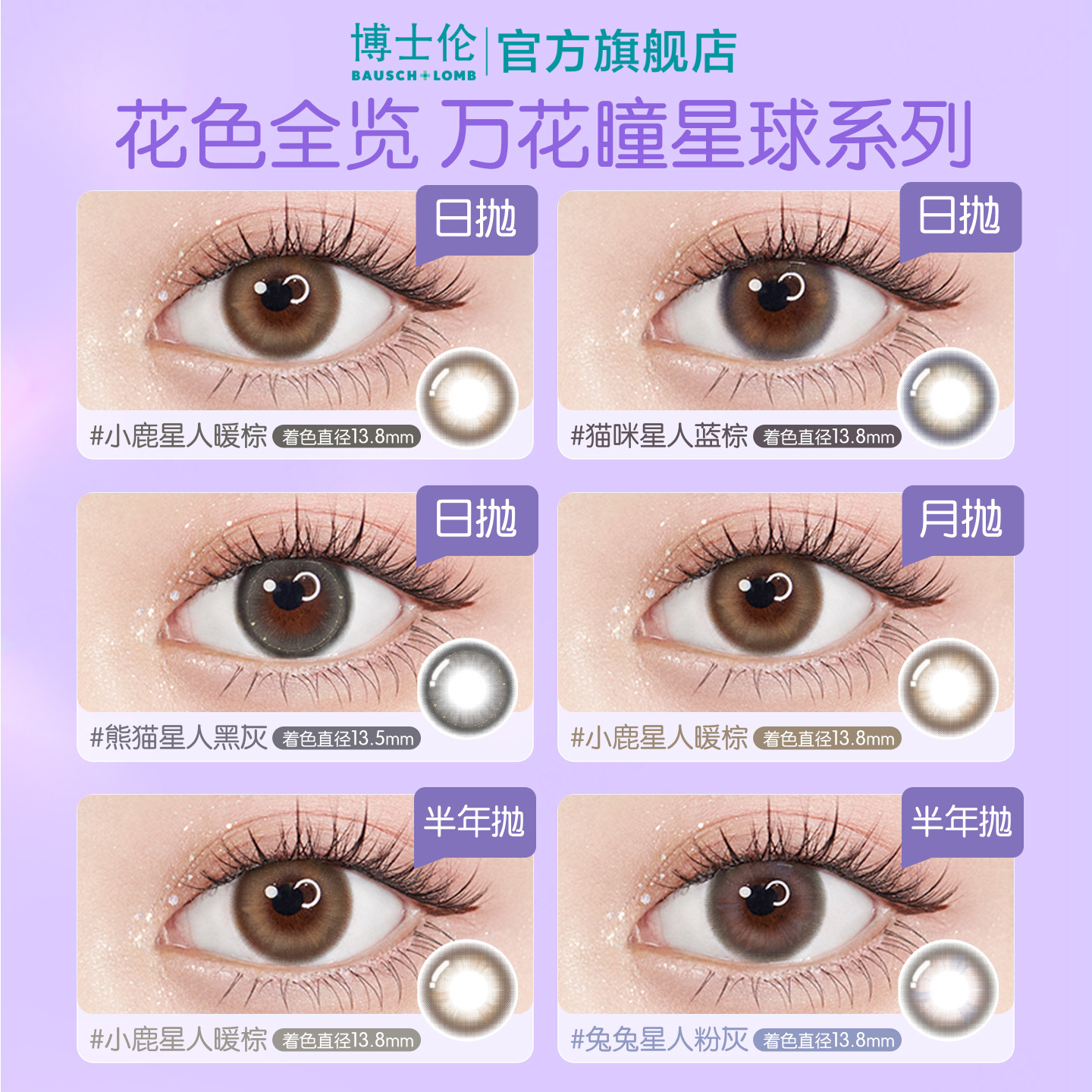 博士伦美瞳日抛彩色隐形近视眼镜万花瞳星球幻想10片熊猫官方旗舰