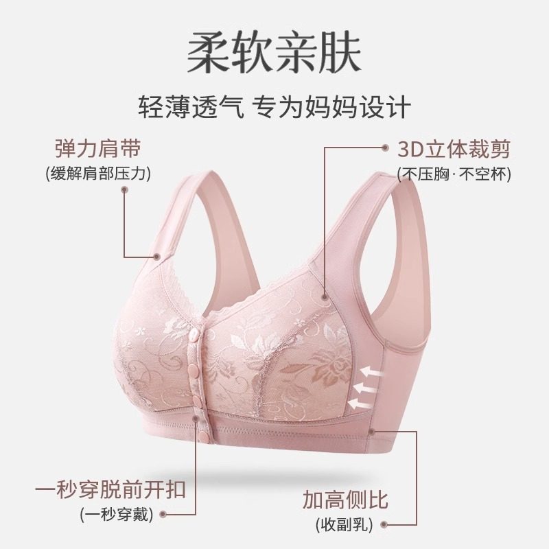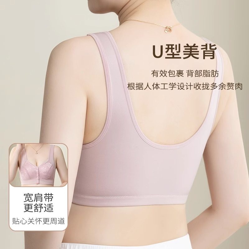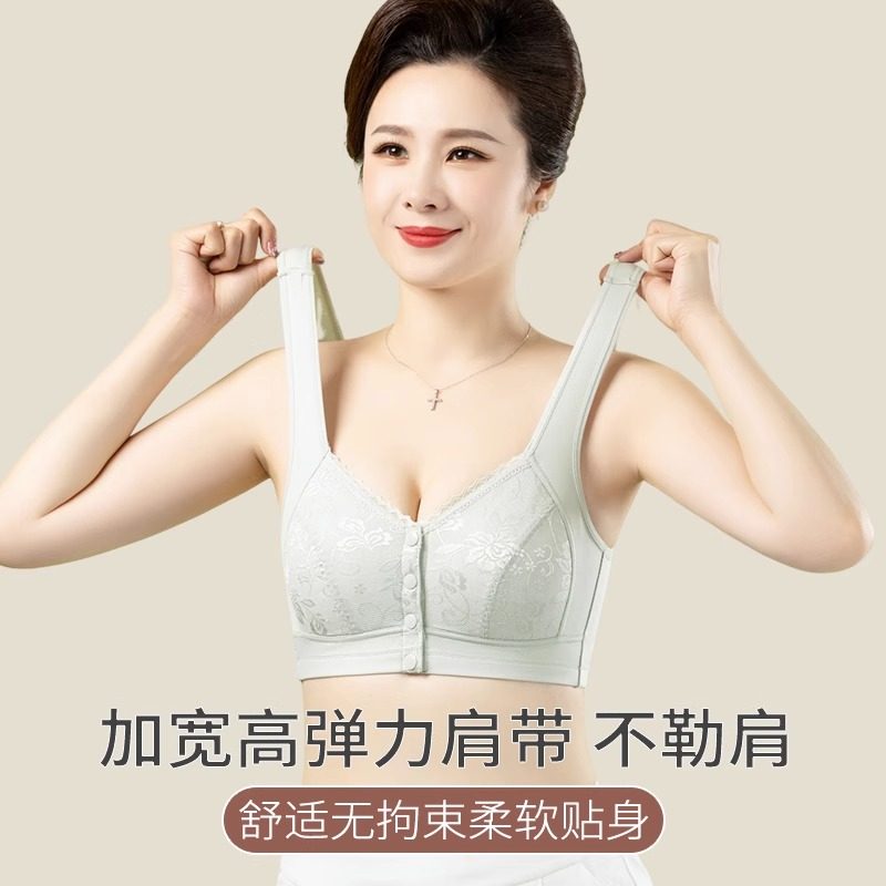 纯棉妈妈内衣大码无钢圈前扣文胸中老年人背心式妇女聚拢薄奶胸罩