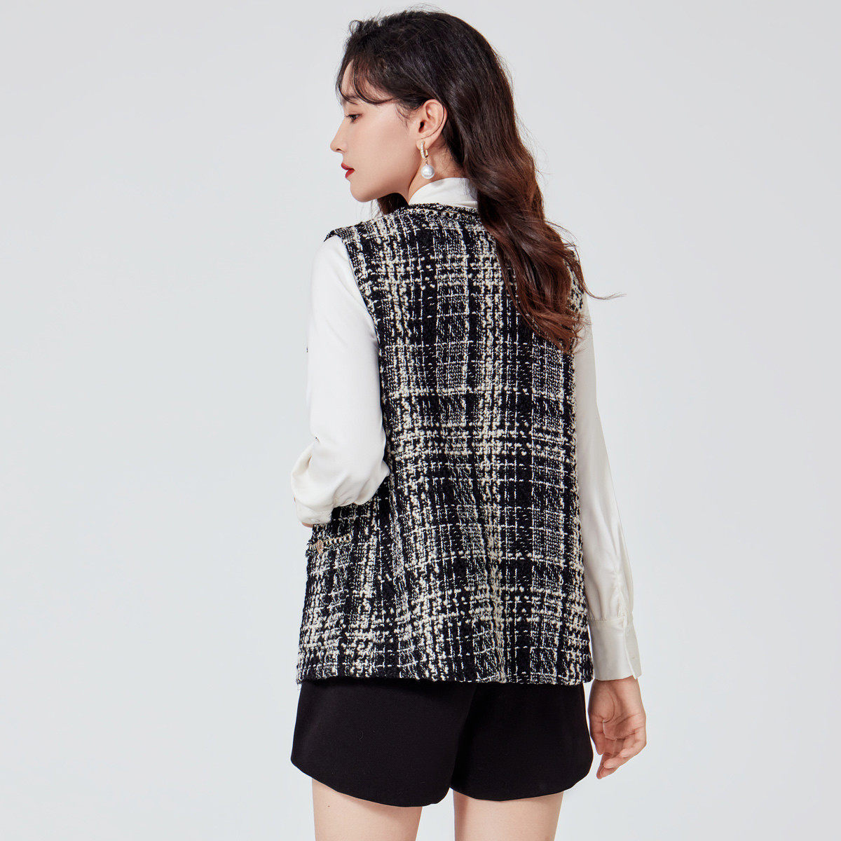 羊羔绒羽绒棉马甲女秋冬配大衣内搭马夹加绒v领坎肩加绒保暖背心