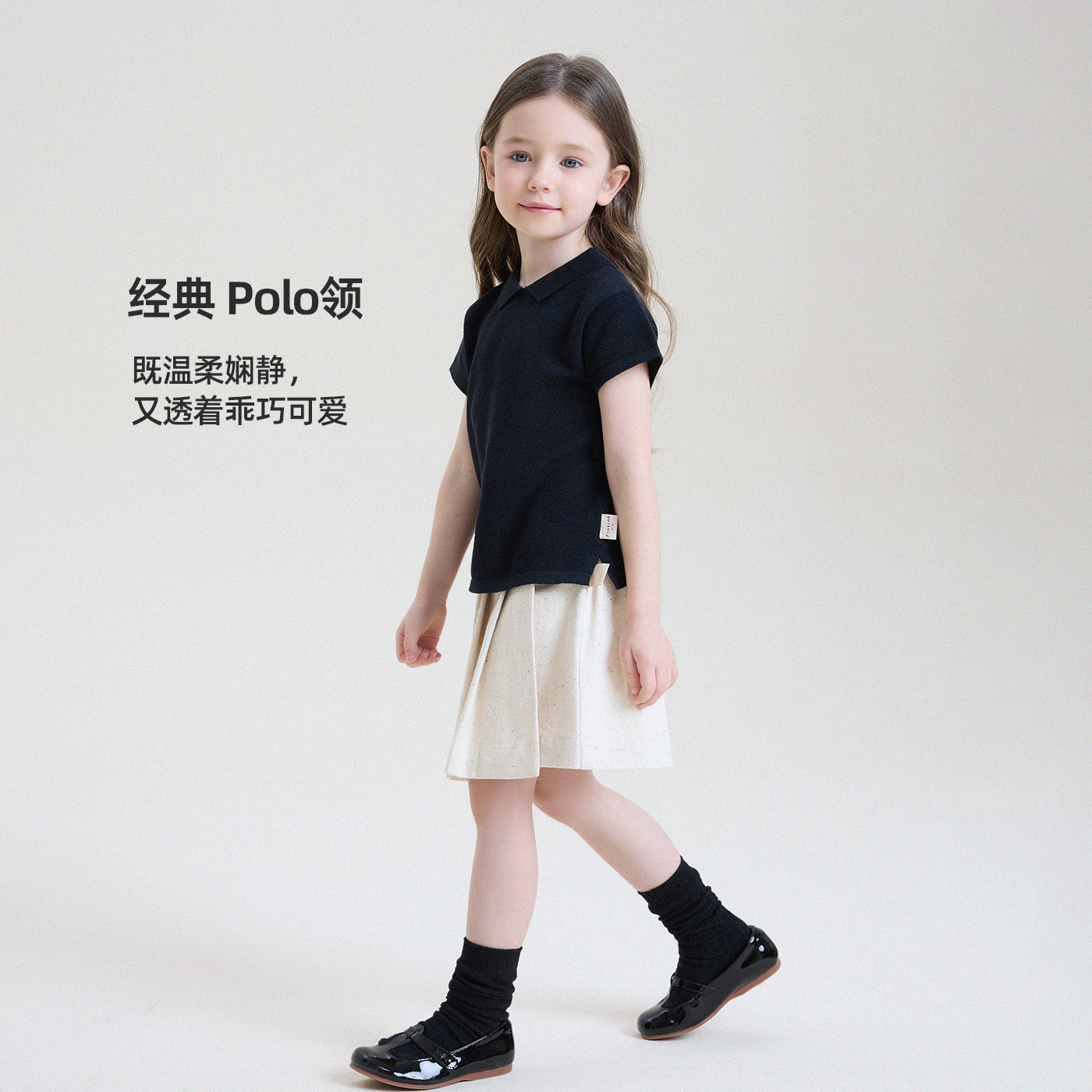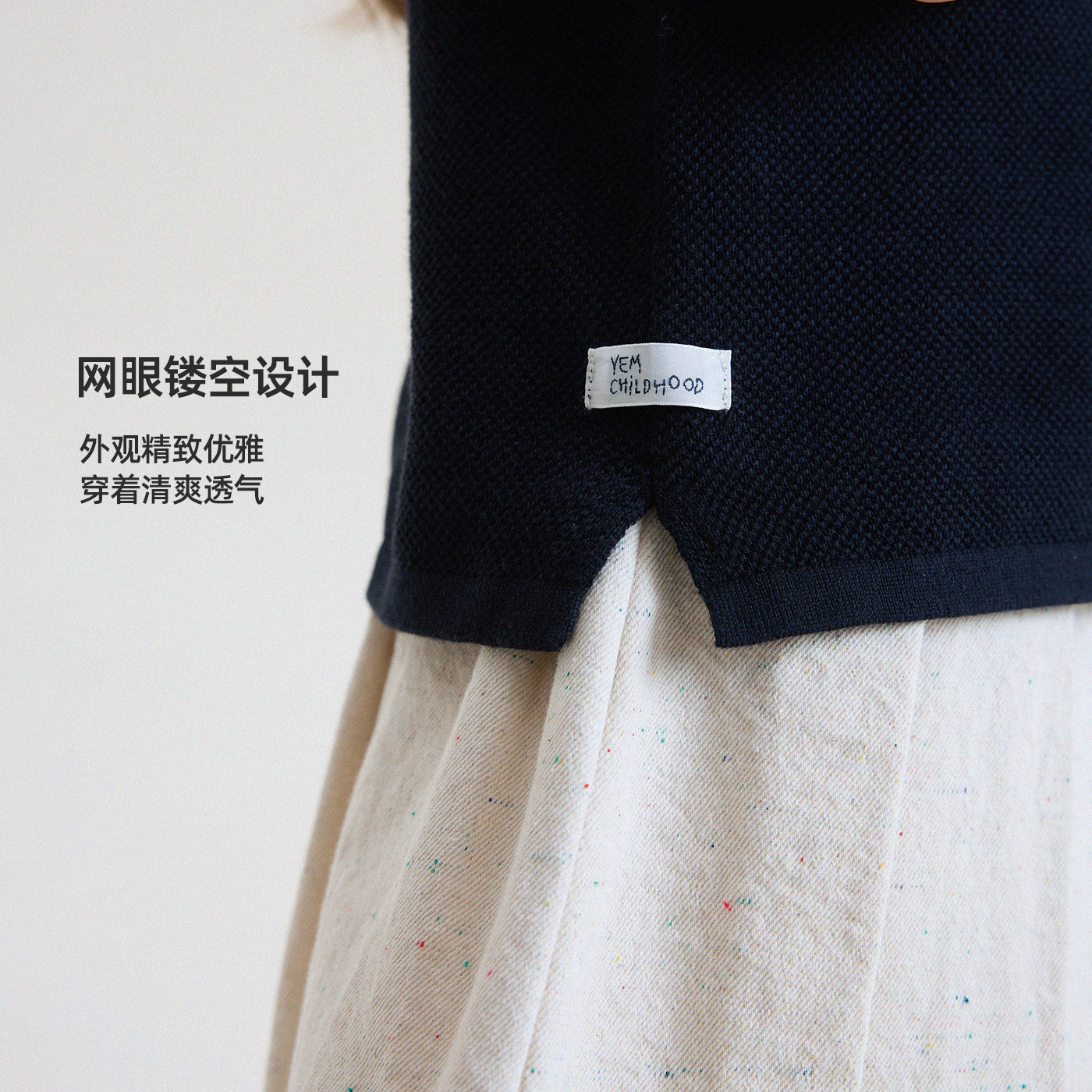 允儿妈女童2026春季新款镂空Polo针织衫儿童纯棉衬衫女宝时尚短袖