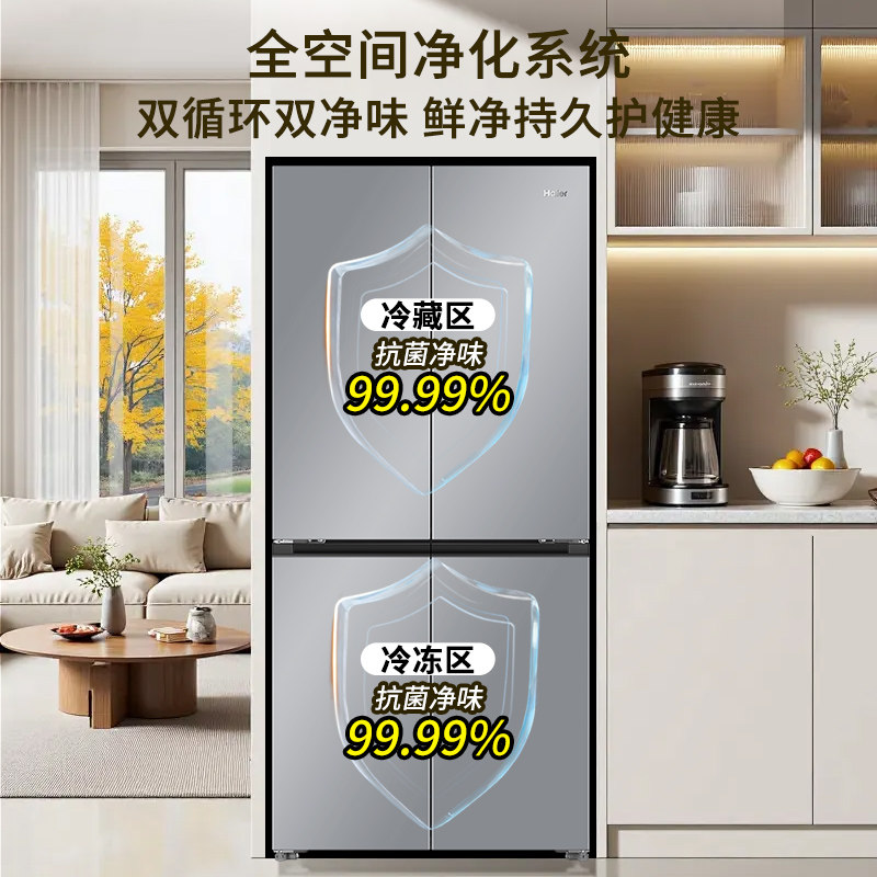 海尔冰箱以旧换新补贴476L十字双开门大容量家用一级能效无霜官方