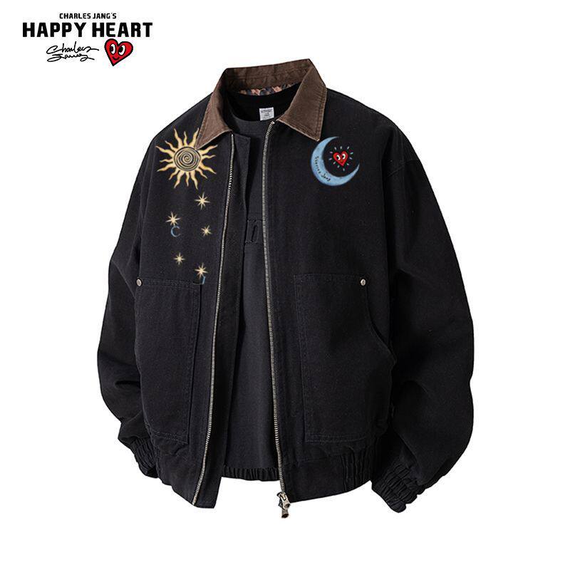 查尔斯桃心太阳月亮印花工装夹克男女春秋季新款宽松休闲外套上衣