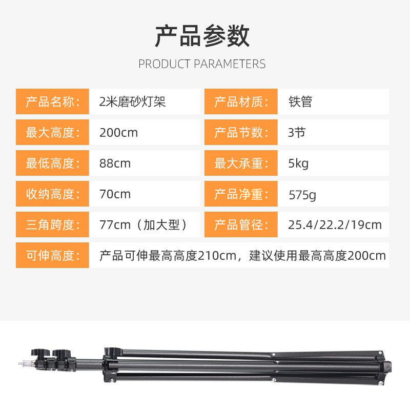 2米磨砂款测温仪支架直播拍照摄影落地手机支架灯架摄影灯三脚架