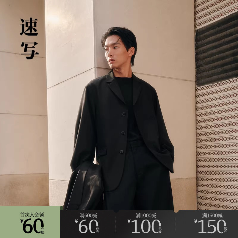 速写奥莱outlets男装秋冬新品宽松西服外套简约设计优雅感通勤