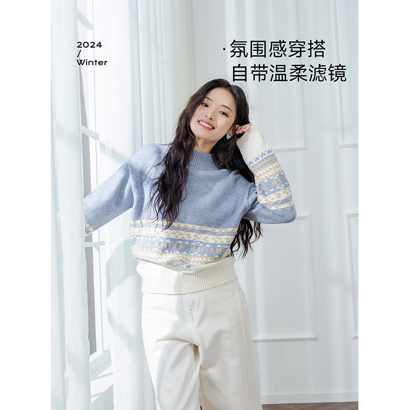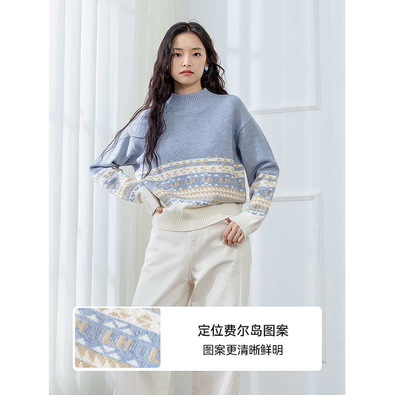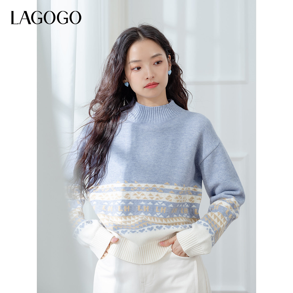 LAGOGO抗起球费尔岛针织衫毛衣女拉谷谷冬季套头软糯舒适上衣