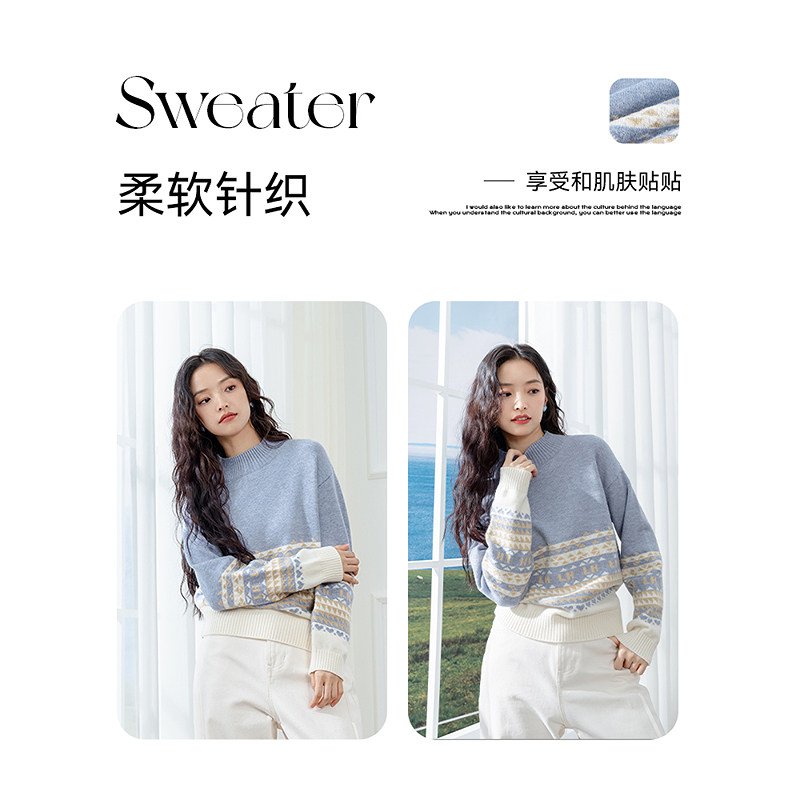 【品牌专供】半高圆领针织衫套头大码宽松百搭打底针织