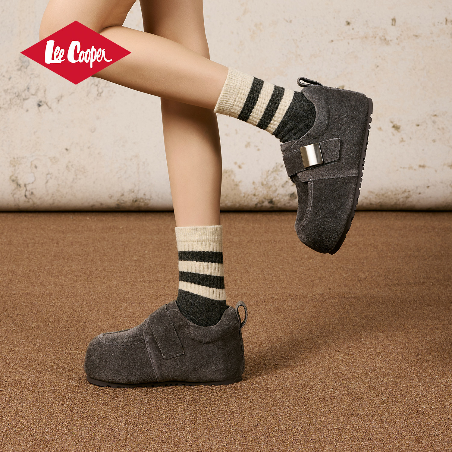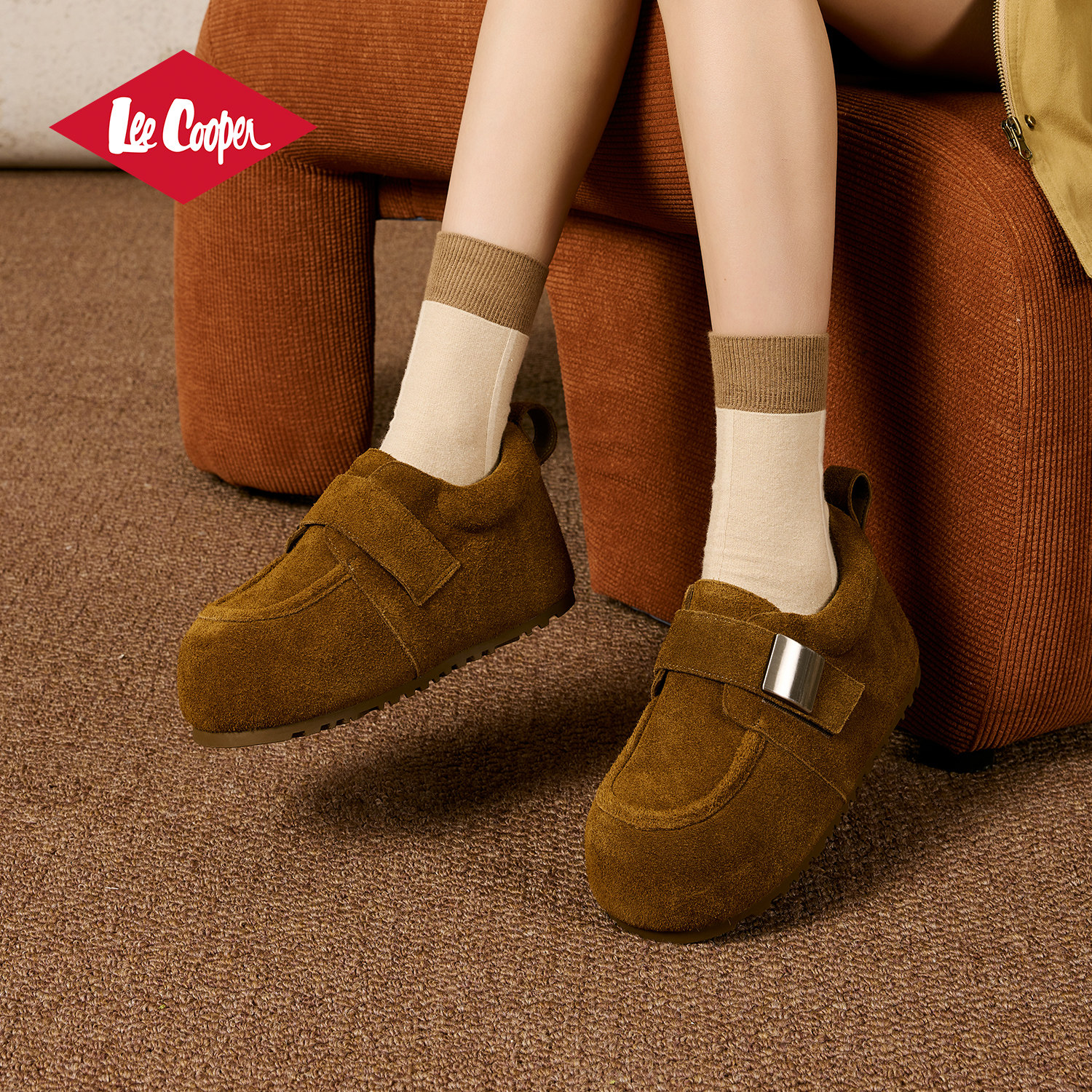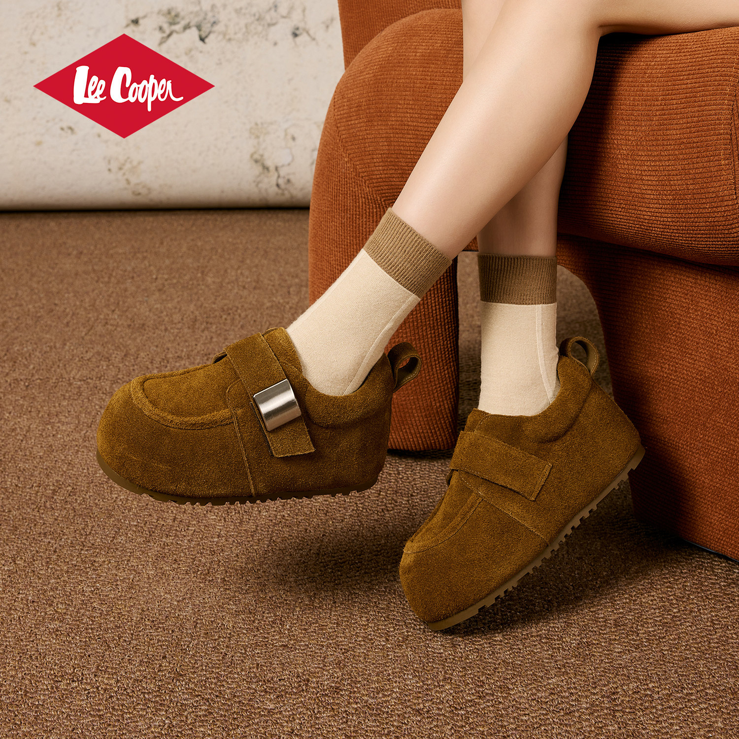 Lee Cooper复古勃肯鞋女2025新款秋冬软底保暖内增高绒面休闲女鞋