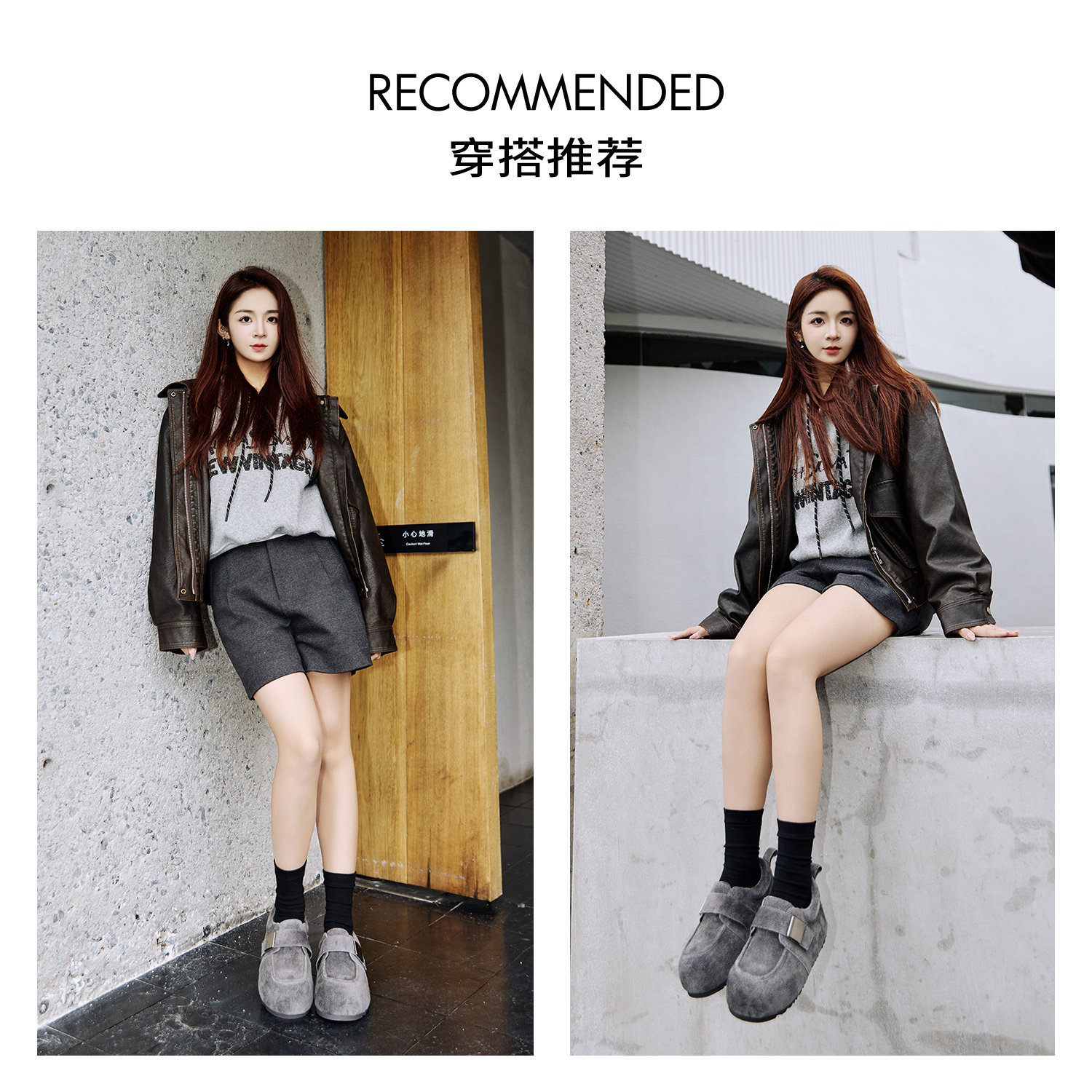 米霏~灰色厚底勃肯鞋女加绒内增高一脚蹬毛毛鞋博肯棉鞋大码女鞋