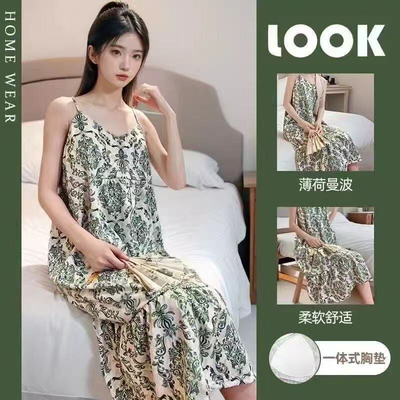 圆领背心裙女夏季吊带甜美带胸垫睡衣宽松薄款可外穿时尚家居服