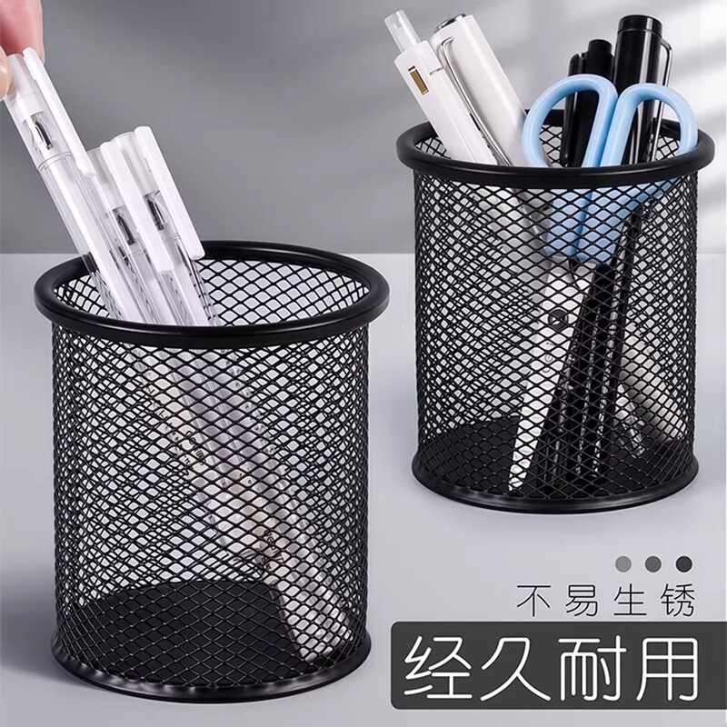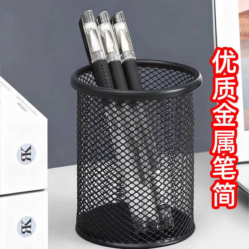金属笔桶网状镂空时尚文具收纳儿童笔盒超大办公用品网格笔筒大容量装笔放笔学生文具笔座笔架收纳盒摆件