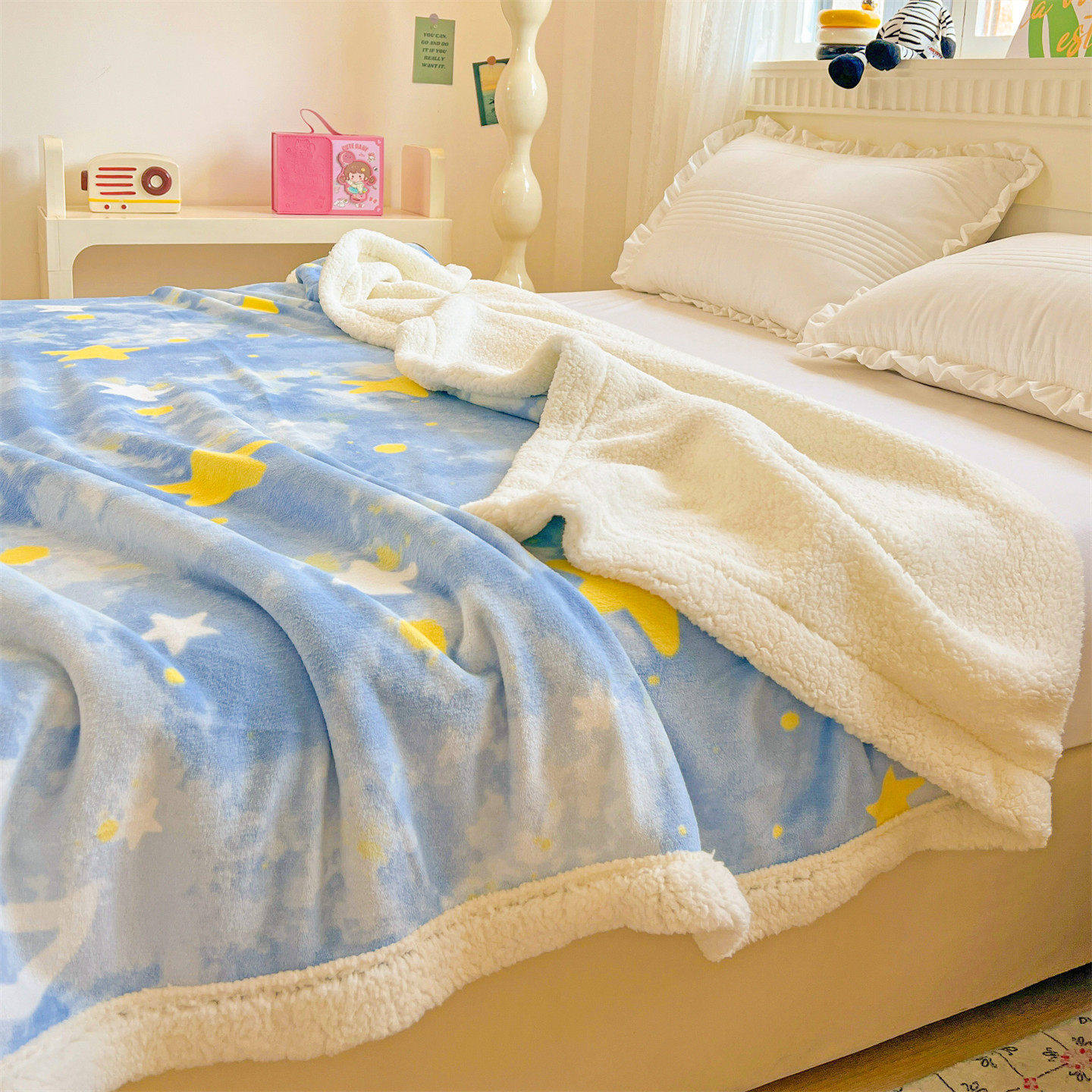 儿童羊羔绒毛毯双层加厚午睡沙发毯子幼儿园小学生法兰珊瑚绒盖毯