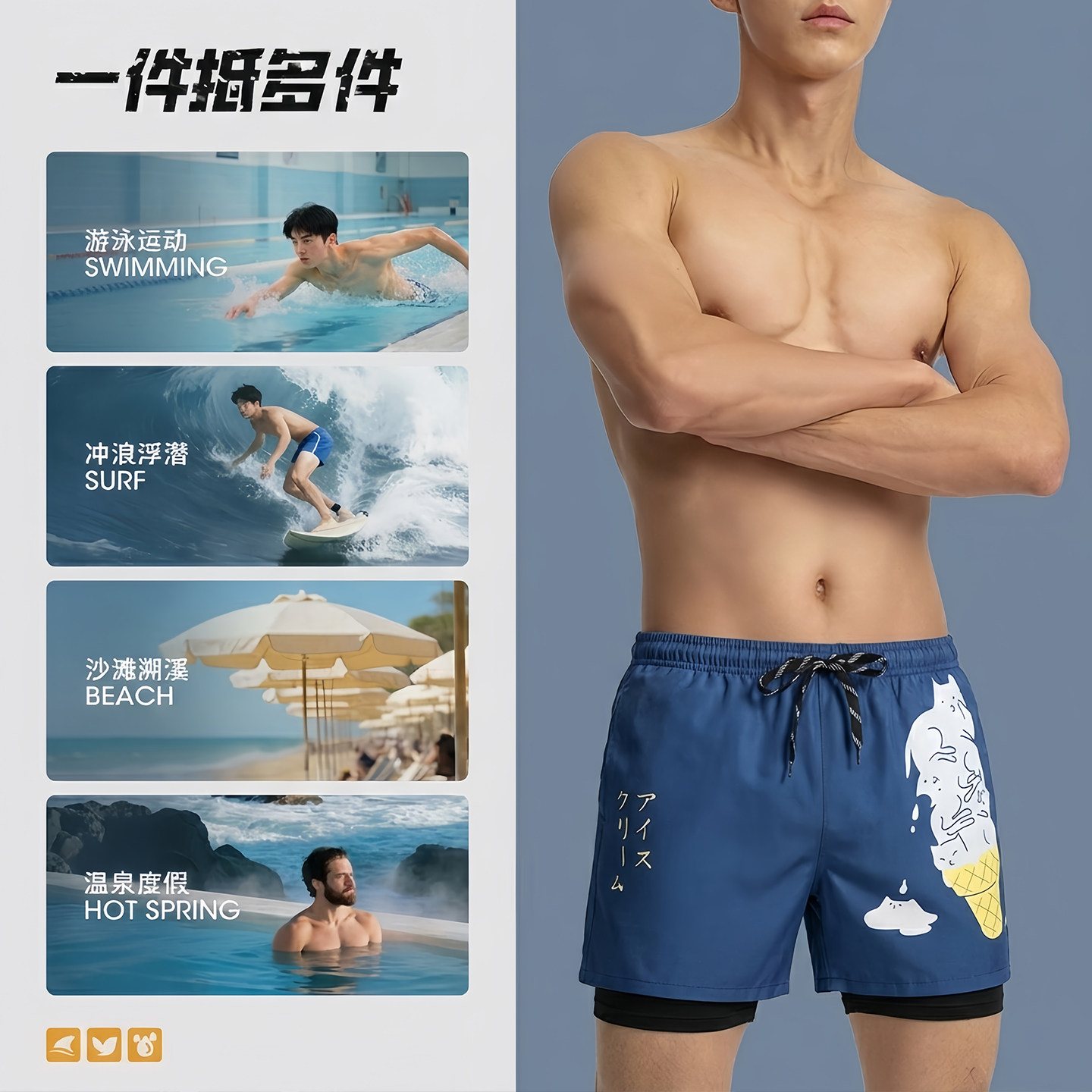 双层男士泳裤速干大码防尴尬2025新款专业游泳装备沙滩裤全套