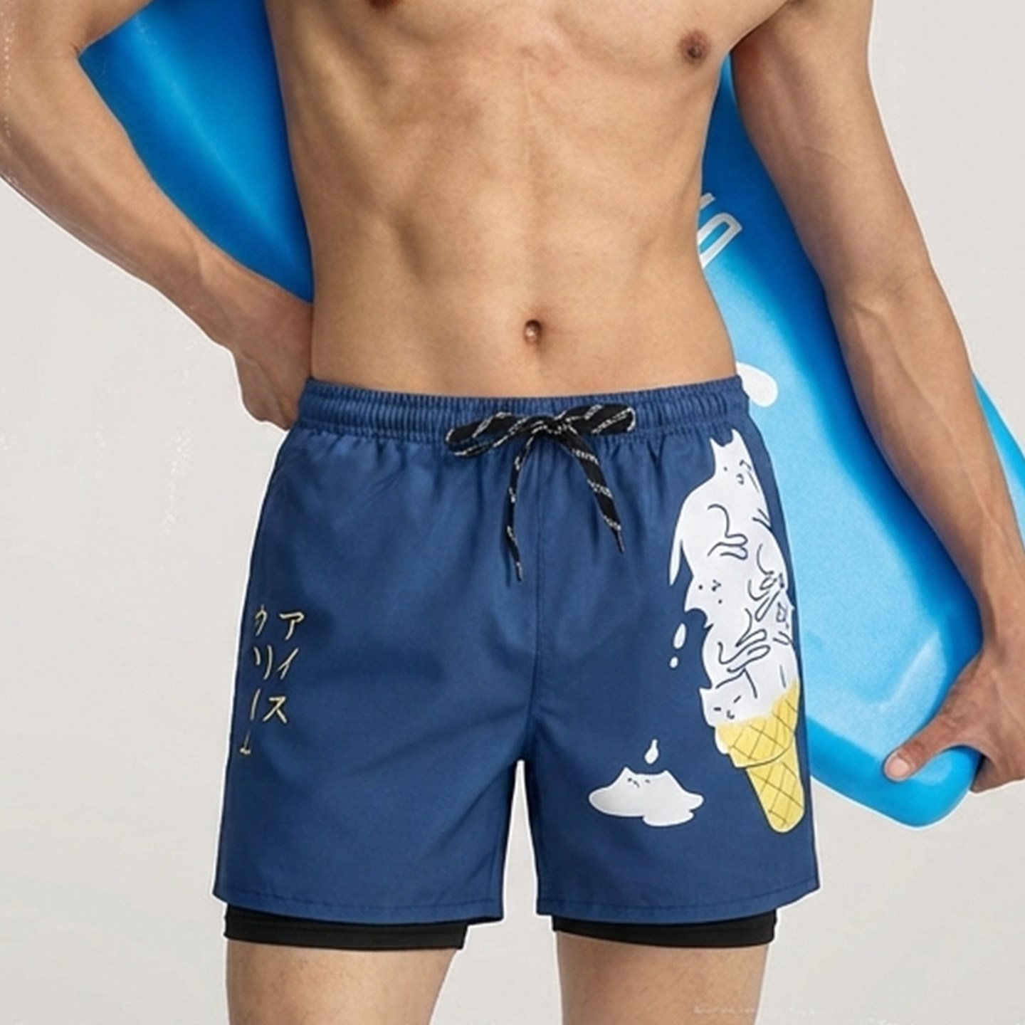 夏季沙滩裤男生沙滩裤速干可下水双层游泳裤防尴尬宽松休闲短裤潮