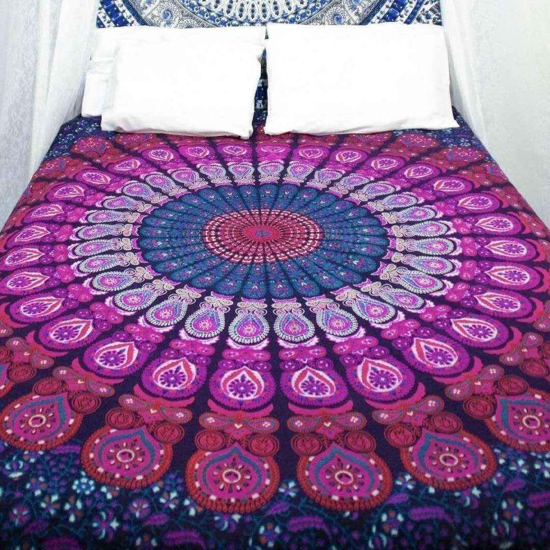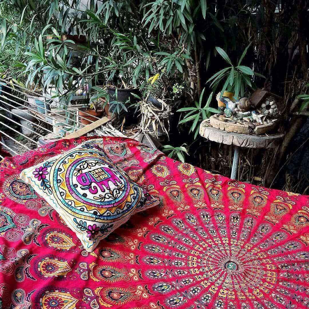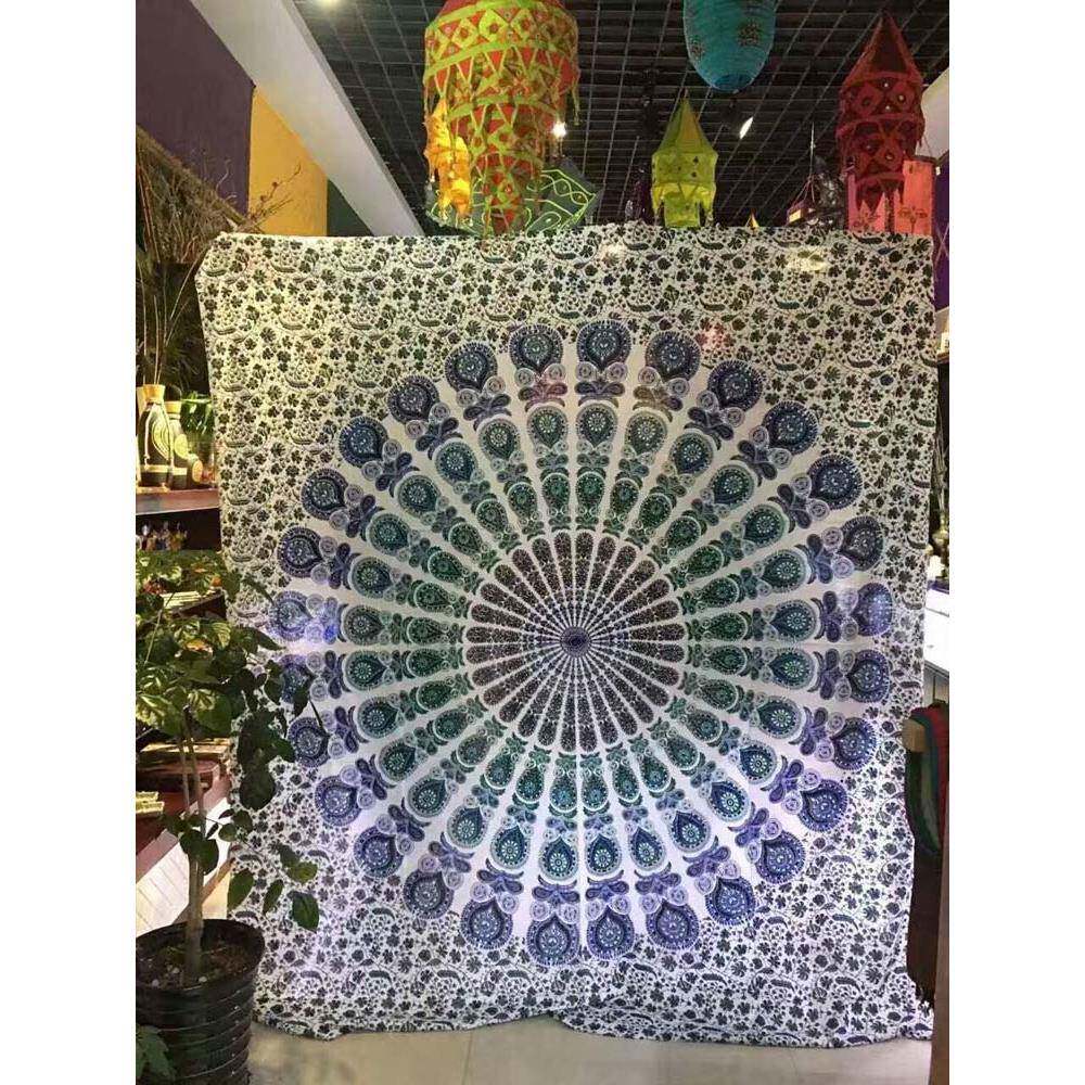 印度孔雀蓝曼陀罗挂毯防灰壁毯波西米亚艺术租房装饰挂布桌布窗帘