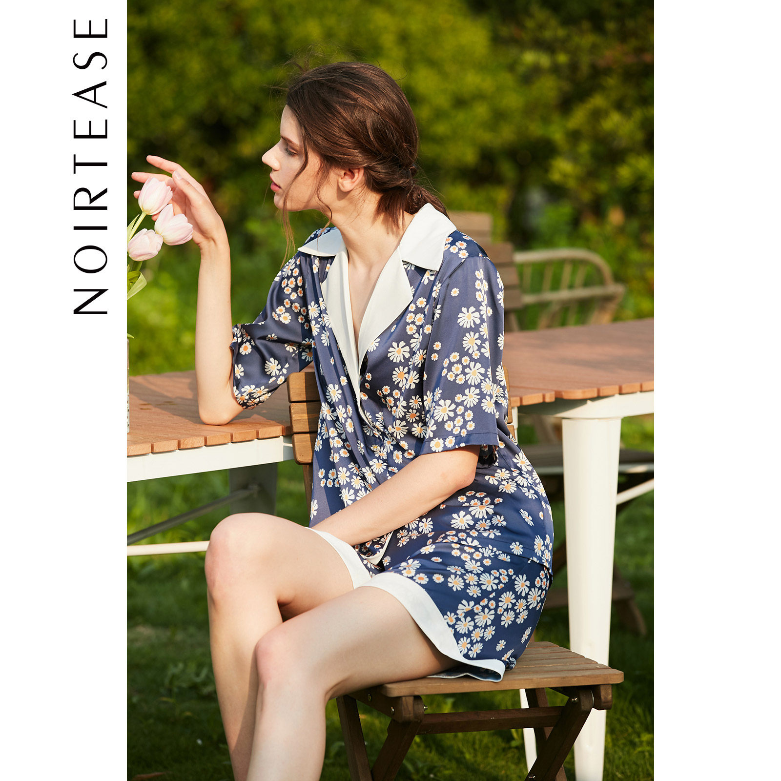NoirTease奈黎诗春夏女士薄款法式印花家居服套装性感睡衣两件套