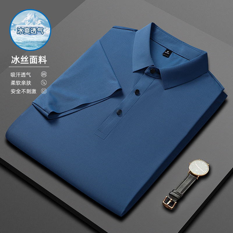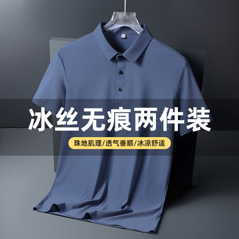 男士冰丝短袖t恤夏季薄2026新款T爸爸装速干上衣polo衫男黑色白色