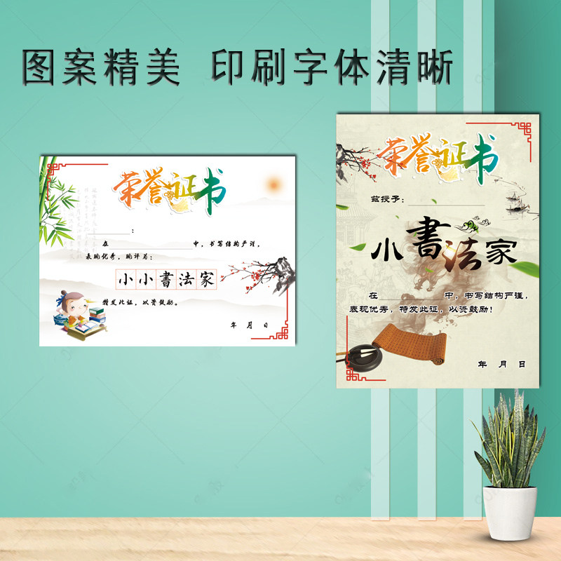 书法比赛奖状学生培训班硬笔毛笔书写可定制类加厚铜版纸奖状包邮