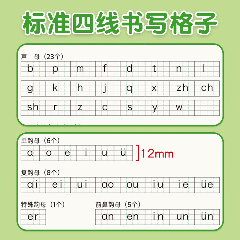 小学拼音默写纸每日一练汉语26个拼音分类听写纸儿童幼小衔接字母定位书写声母韵母控笔定格拼写纸练字练习本