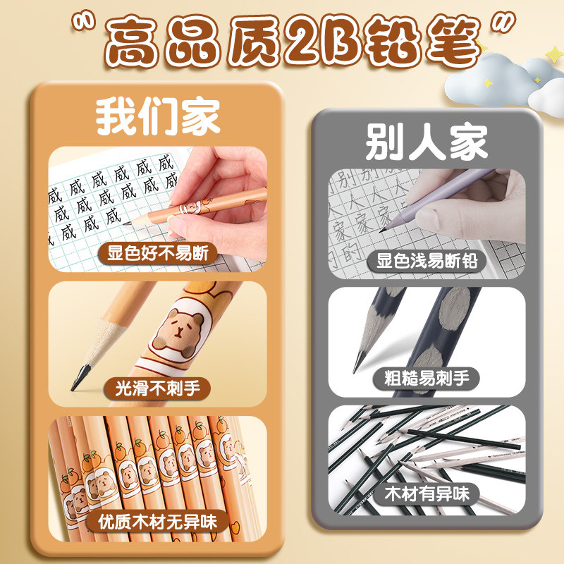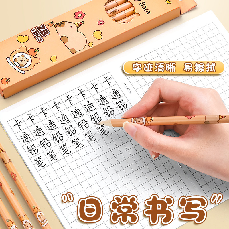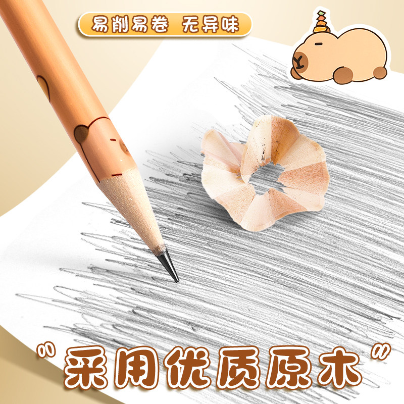 卡皮巴拉2B铅笔文具幼儿园无毒铅笔12支写字笔小学生专用一年级二年级学习用品带橡皮擦答题卡笔开学不易断