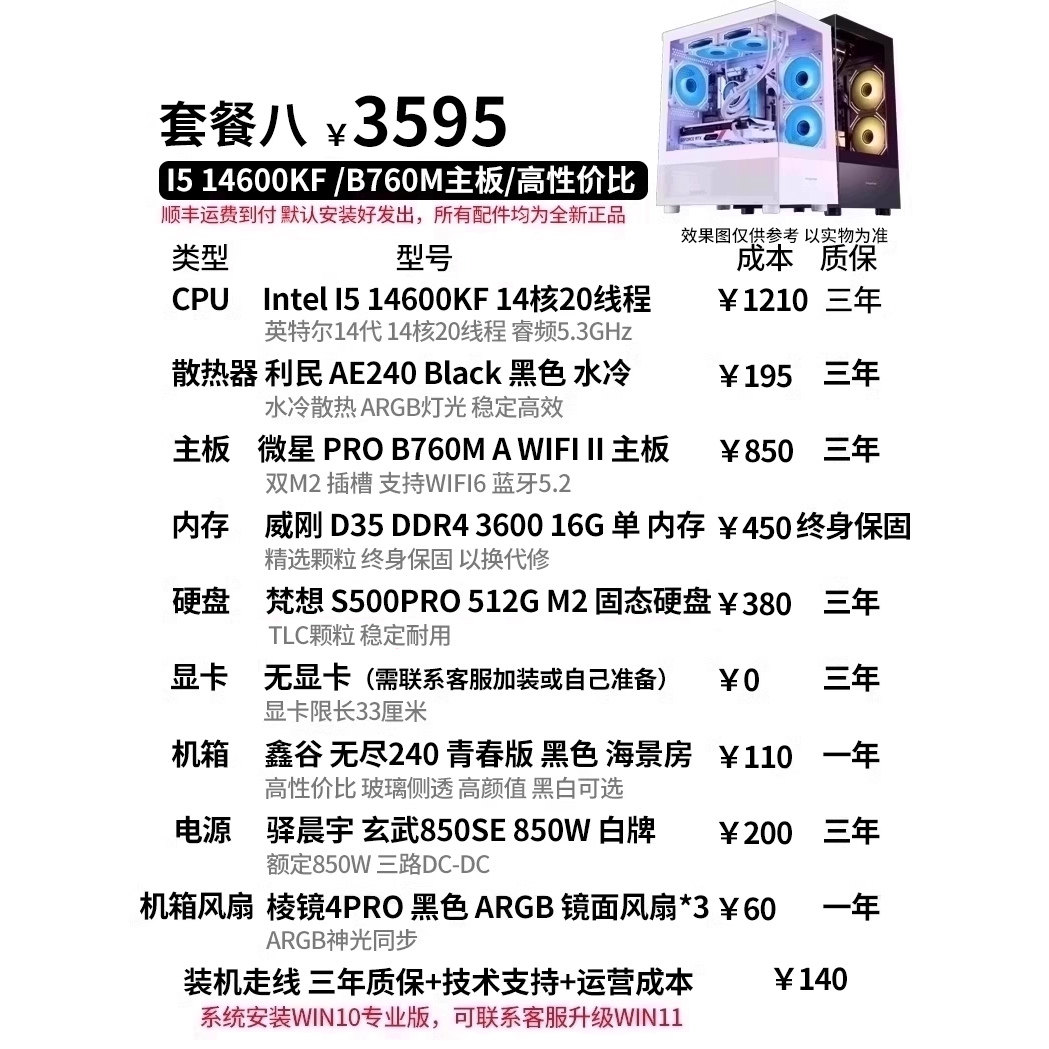 I5 12600KF/14600KF/9600X 无显卡组装台式机电脑DIY整机游戏主机