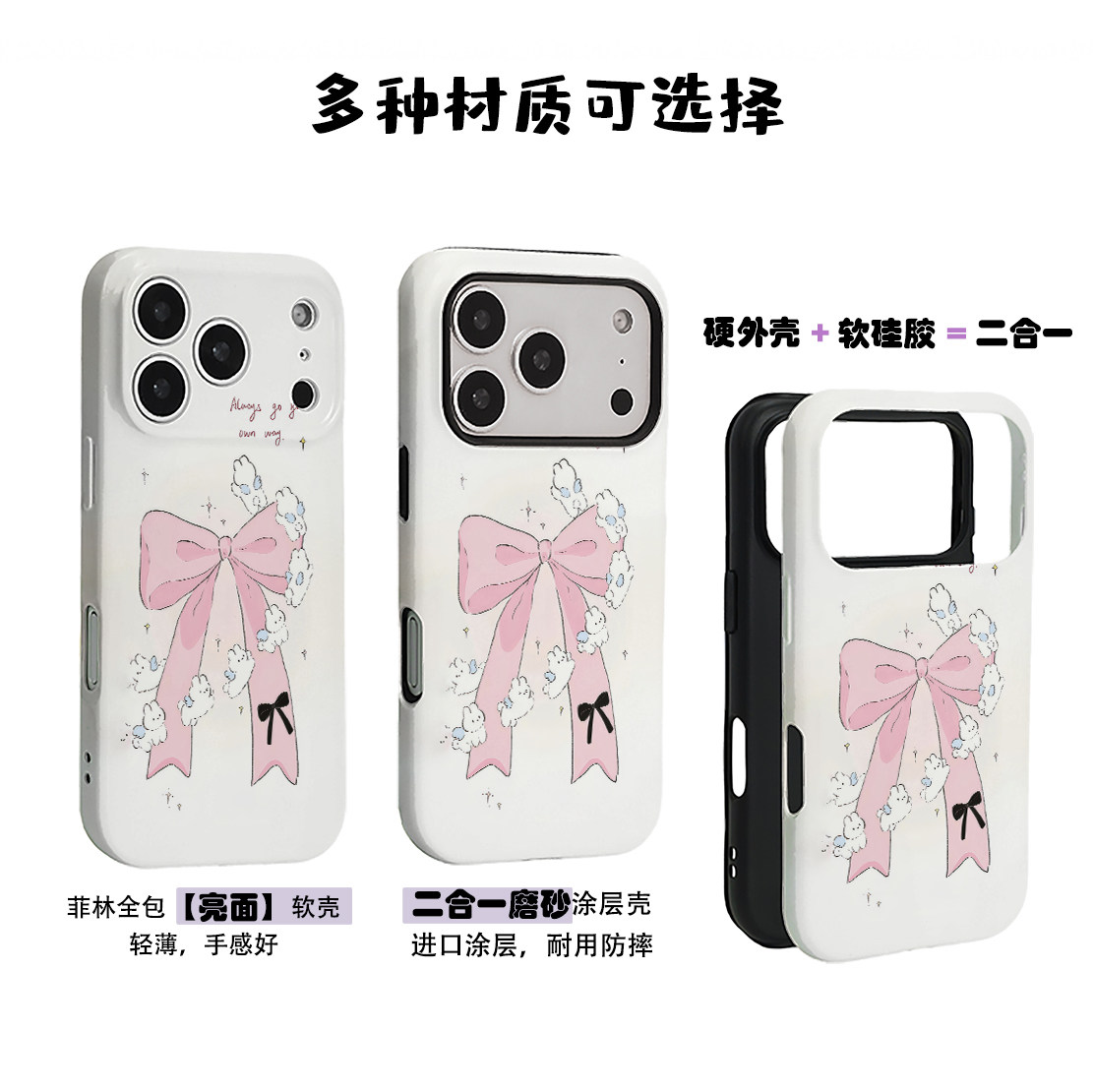 创意蝴蝶结小天使兔兔菲林二合一手机壳适用苹果17nova14华为p70mate60小米15opporeno14vivo荣耀300iPhone16