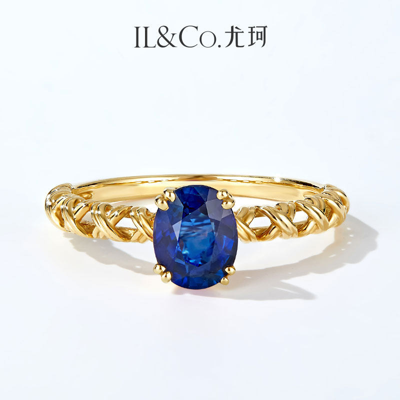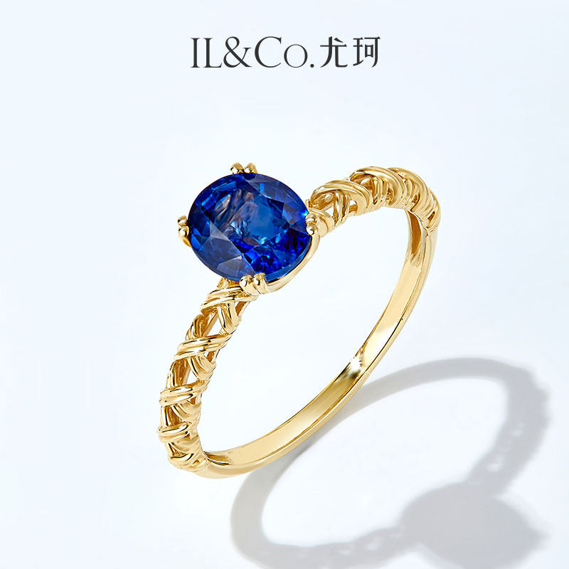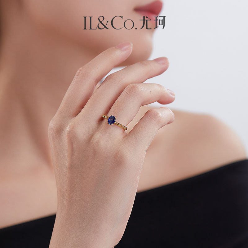 ILCO尤珂「荆棘玫瑰」黄18K金1克拉天然蓝宝石戒指矢车菊彩宝送礼
