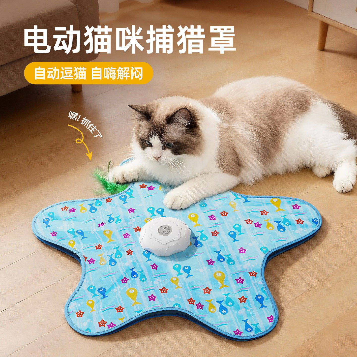 猫咪捕猎毯逗猫棒玩具自动转盘宠物游戏罩猫咪互动丰容玩具躲藏罩