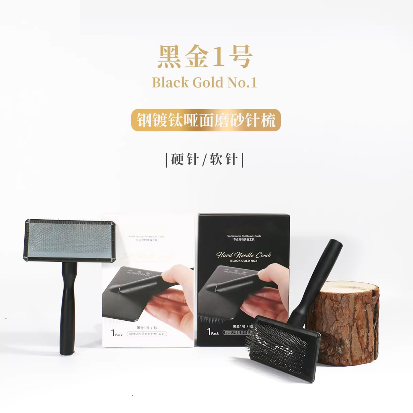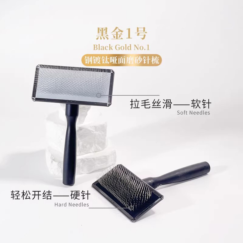 黑金1号钢镀钛磨砂针梳猫咪狗狗梳子宠物毛开结硬针拉毛软针美容