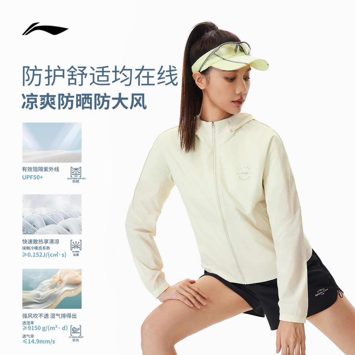 李宁防晒衣女26新品春夏轻薄外套户外出游皮肤衣冰丝跑步运动风衣