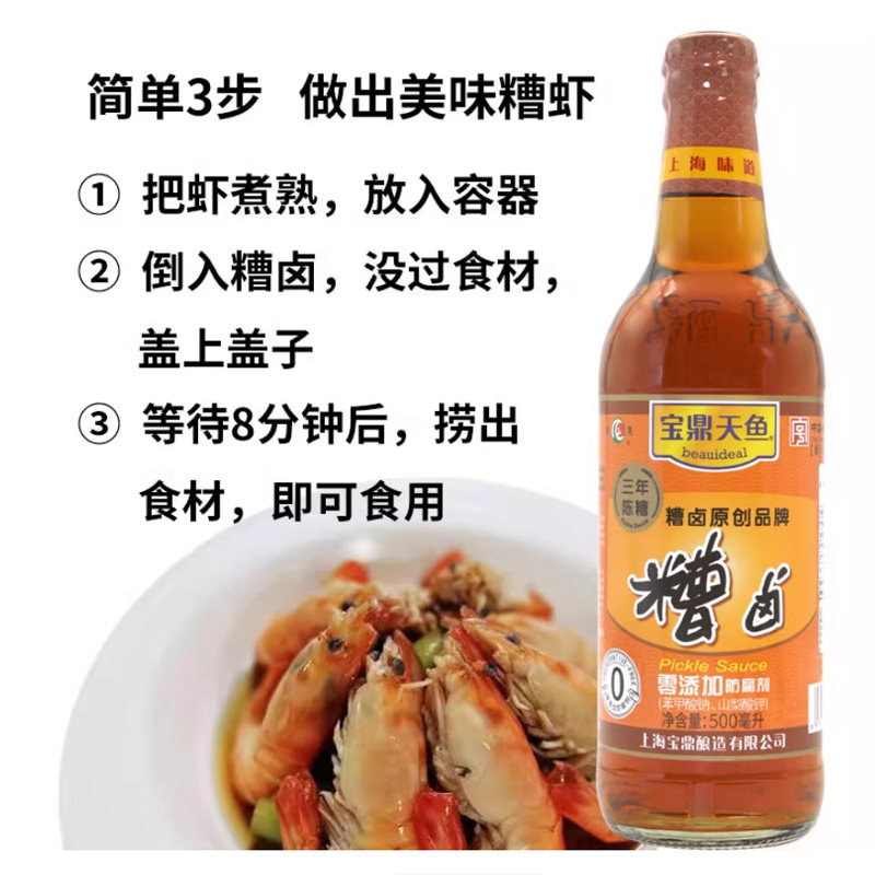 上海宝鼎天鱼薄盐糟卤陈糟500ml*2瓶料酒卤汁糟毛豆泡椒鸡爪醉卤
