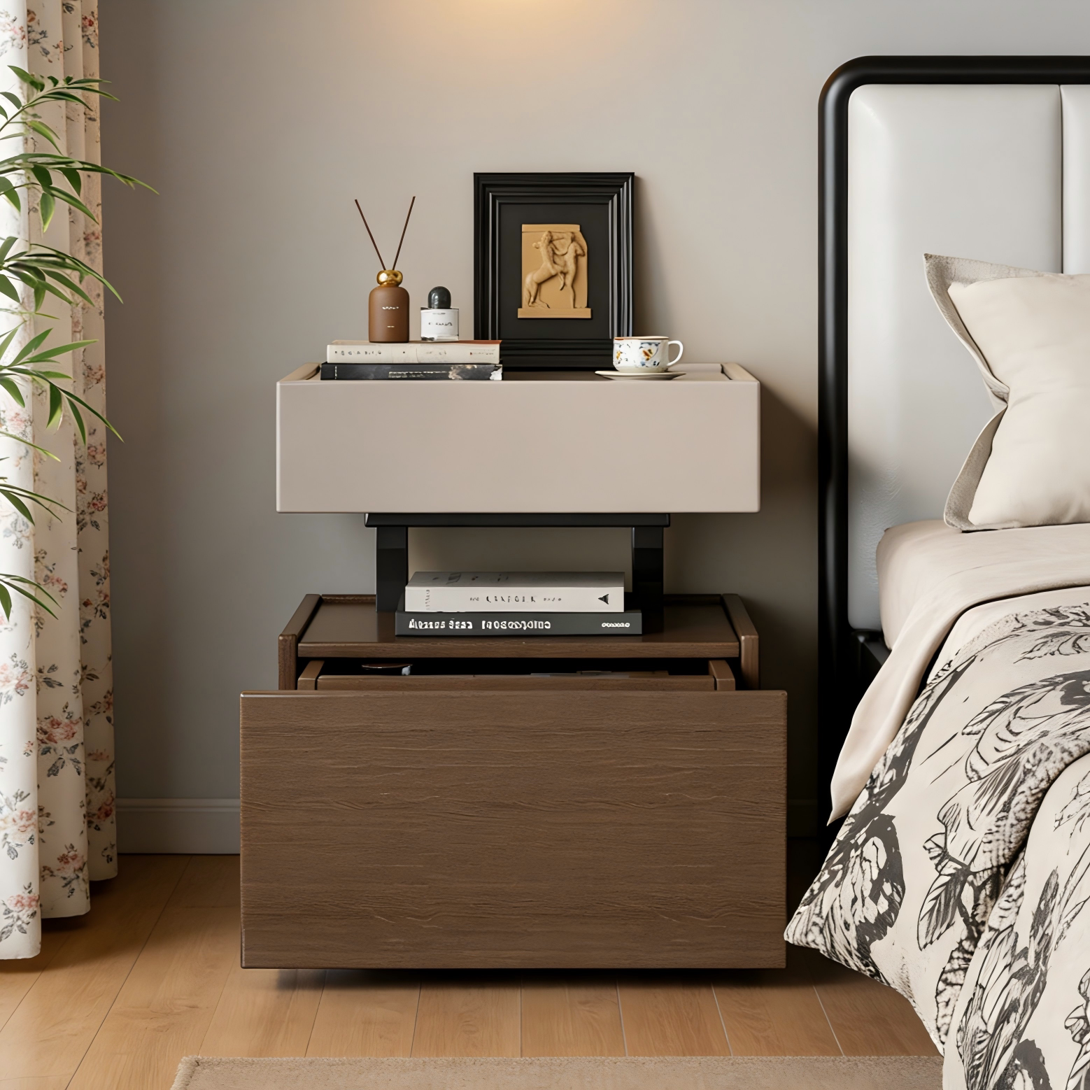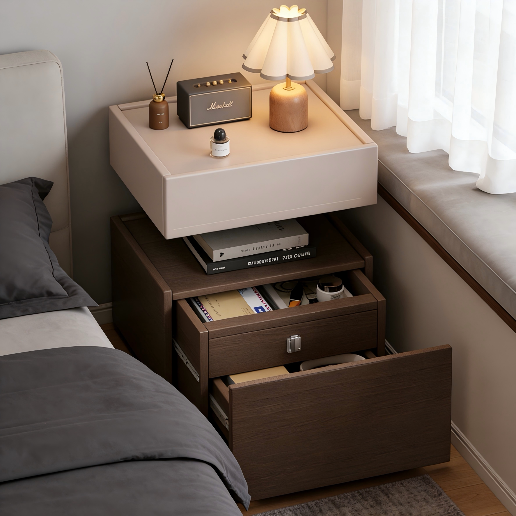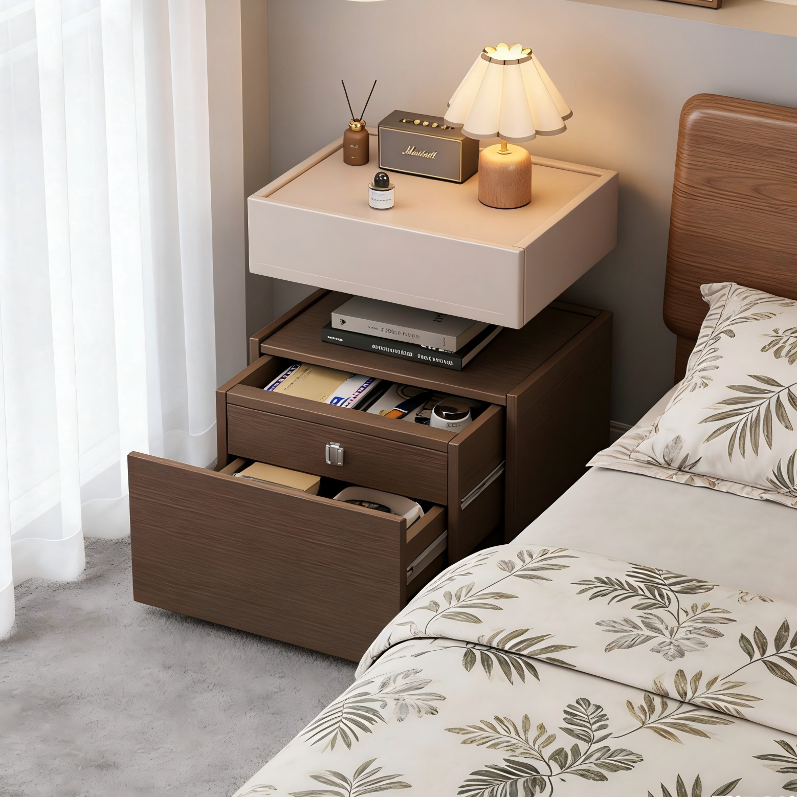 实木床头柜家用卧室高级感轻奢暗格收纳柜2026新款储物悬浮床边柜