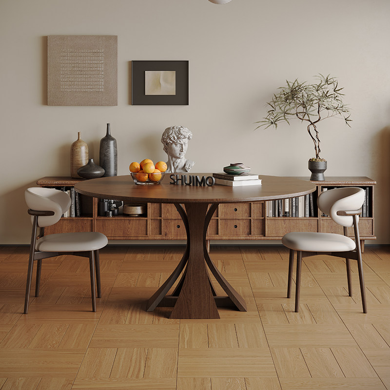 法式奶油复古风实木德利丰岩板家用黑色窈窕饭桌胡桃色圆餐桌椅子