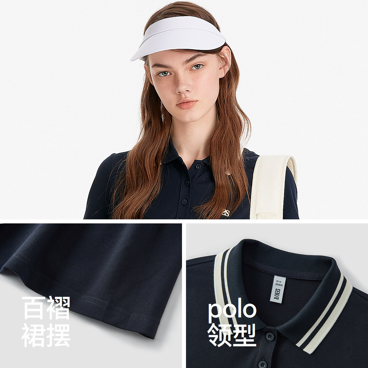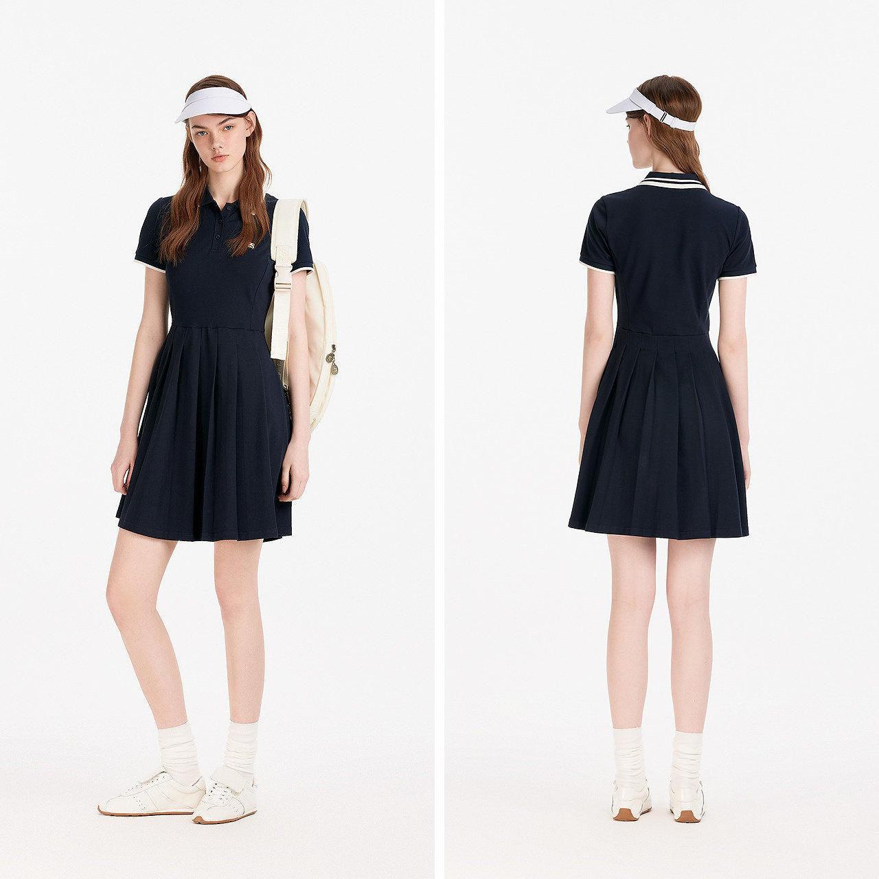 森马连衣裙女夏季撞色polo领短裙字母休闲显瘦运动风学院风百褶裙