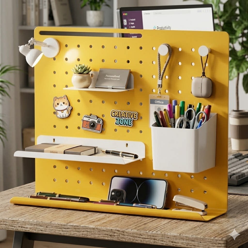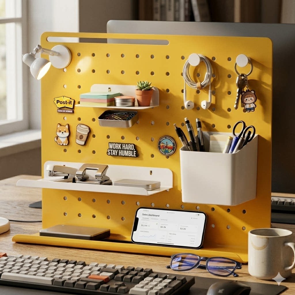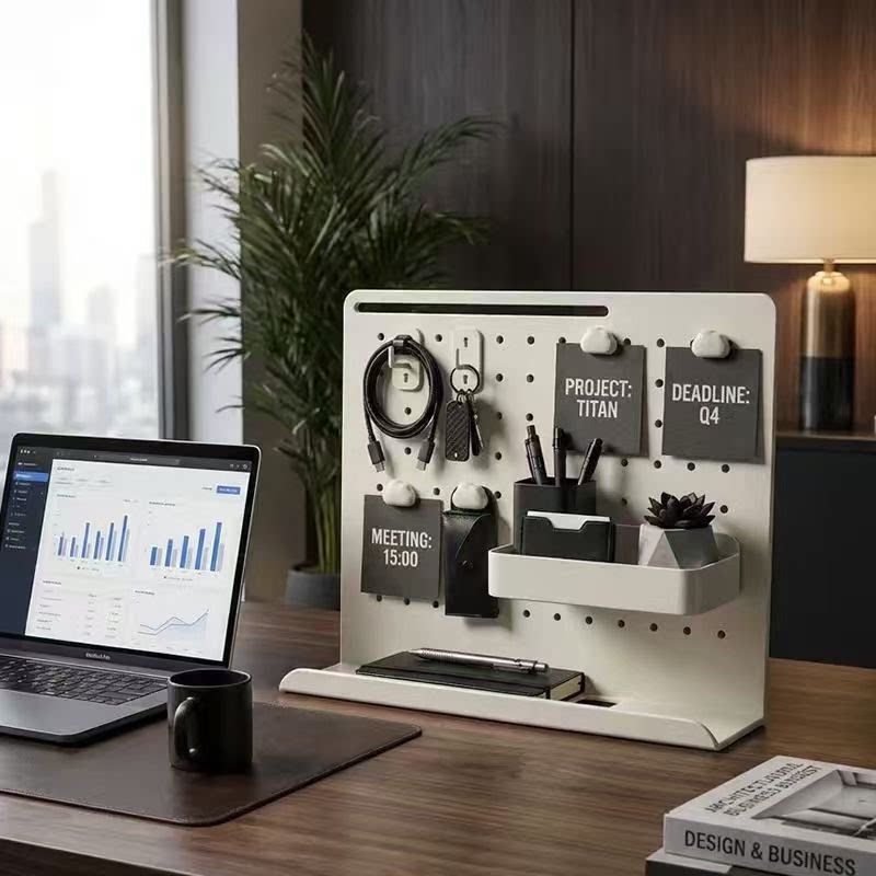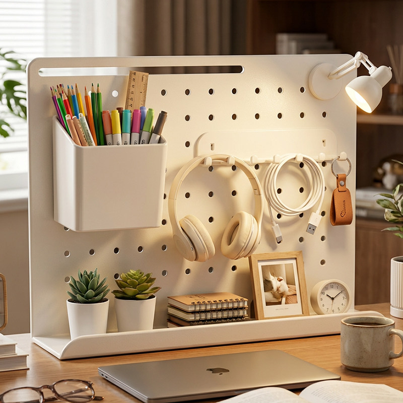 立式桌面洞洞板工位隔板隔断文具手办置物架办公室书桌化妆品收纳