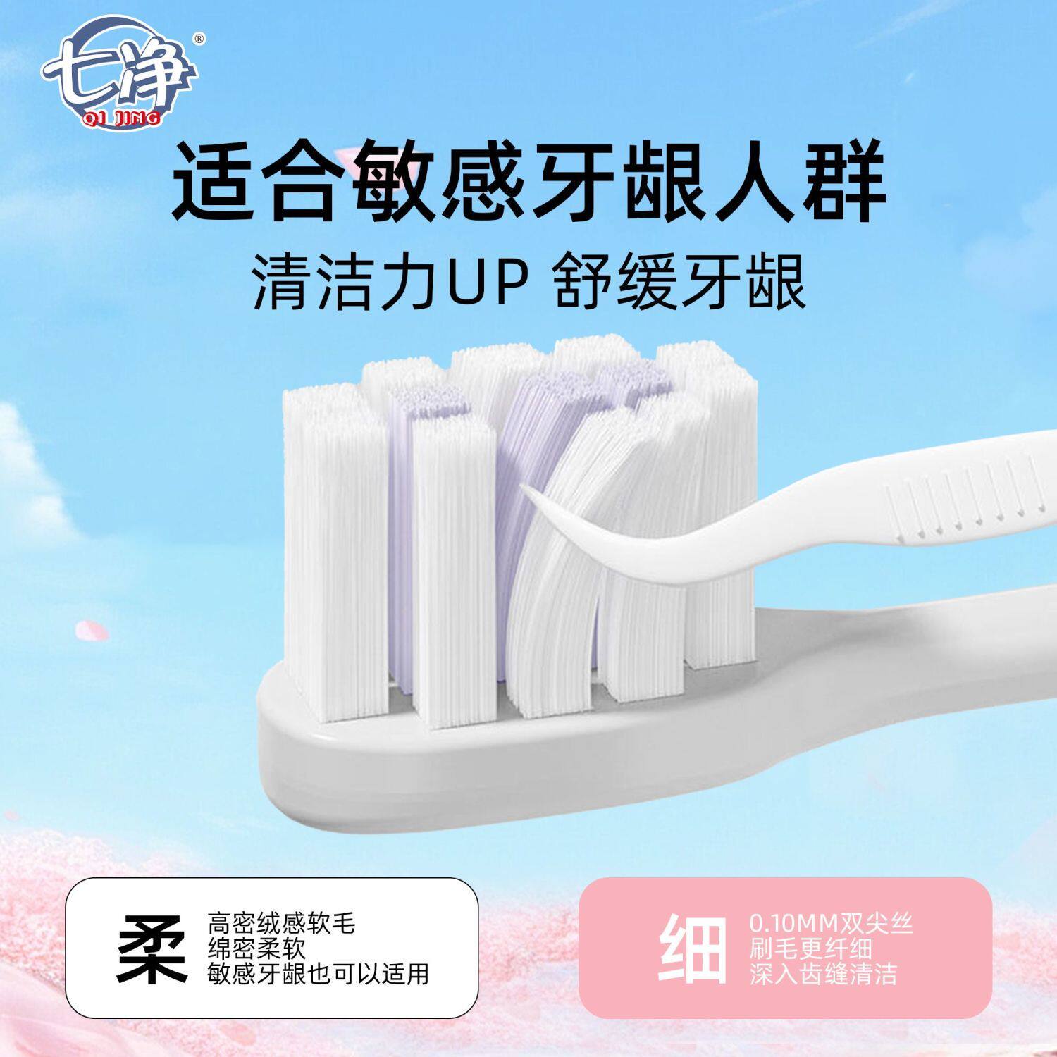 七净牙刷软毛成人臻护高密万毛护龈家庭装家用宽头清洁牙齿牙龈