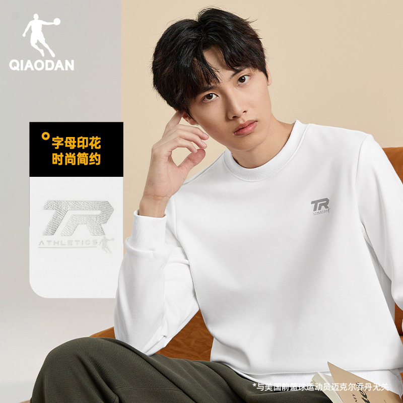 乔丹运动卫衣男2026春季新款加绒保暖舒适简约圆领针织上衣长袖