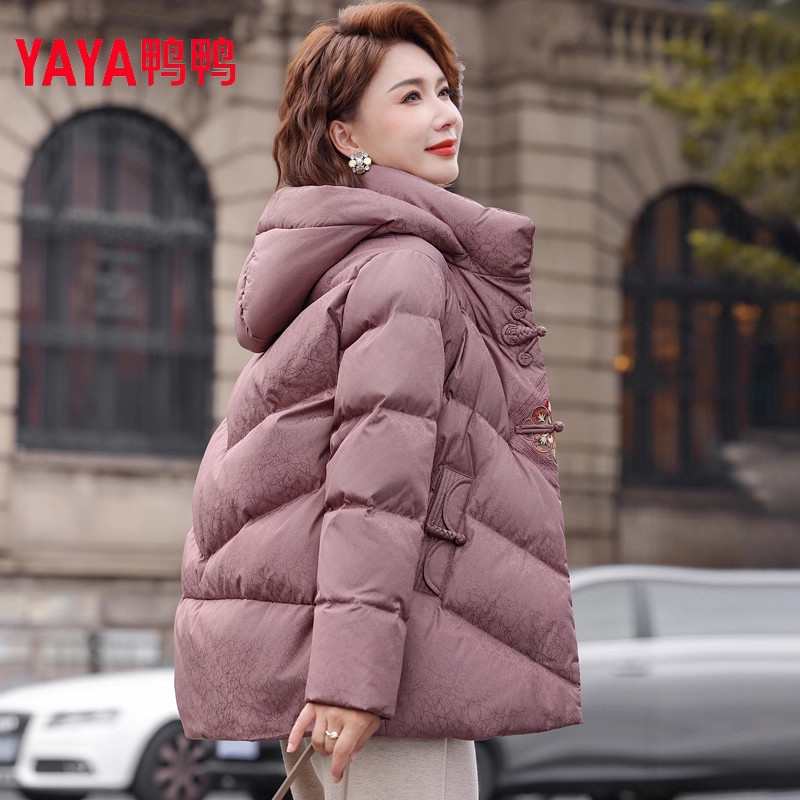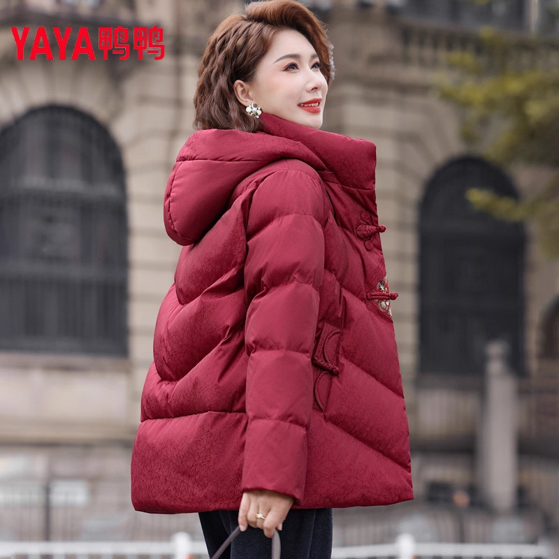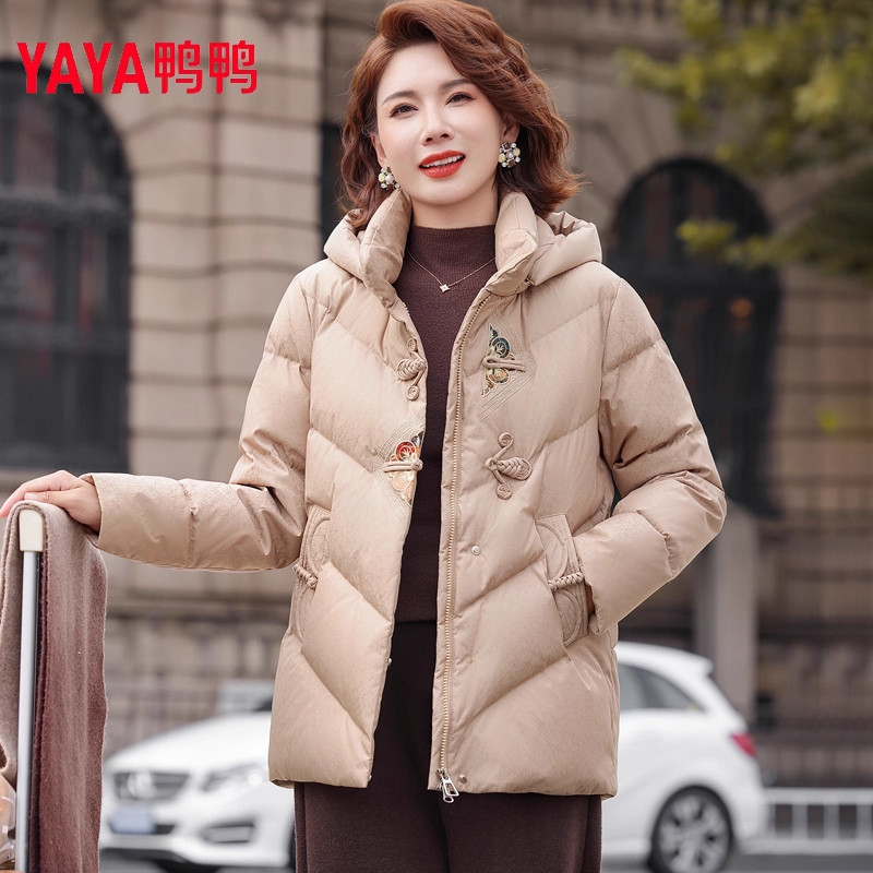 YAYA鸭鸭妈妈冬装羽绒服女士2025新款中老年连帽洋气加厚保暖外套