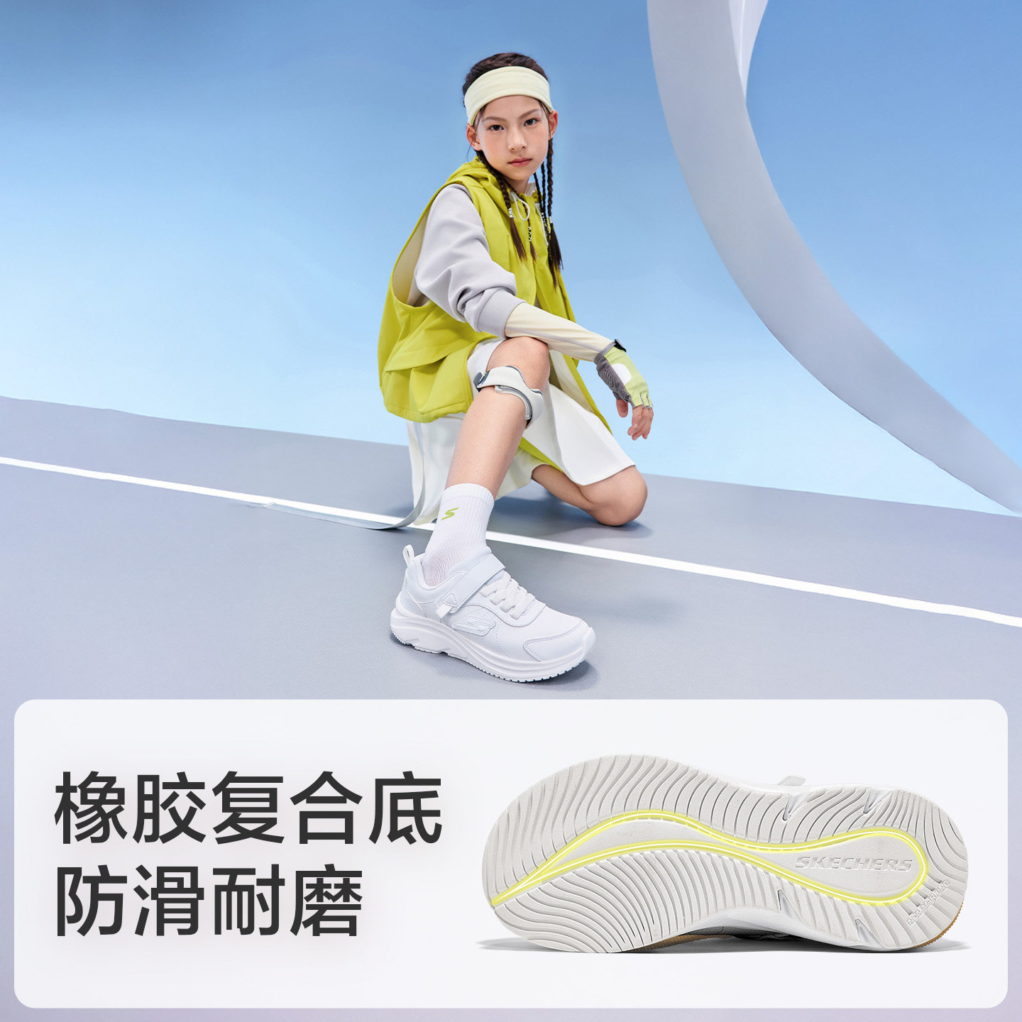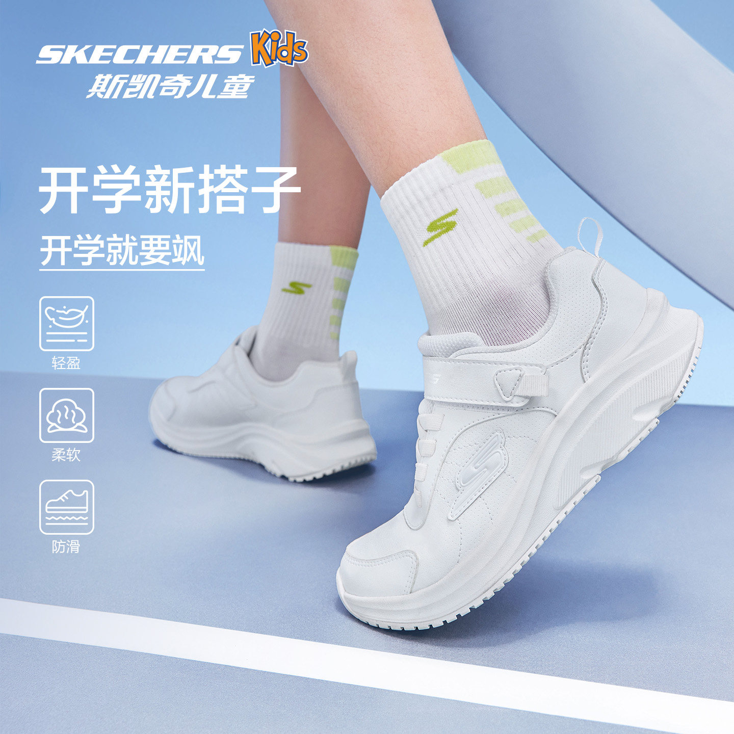 Skechers斯凯奇儿童小白鞋春秋学生轻便软底童鞋男女童校园运动鞋