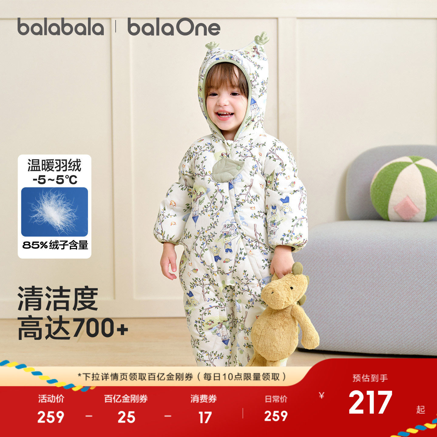 巴拉巴拉婴儿连体衣羽绒服宝宝衣服哈衣爬服2025新款儿童冬装保暖