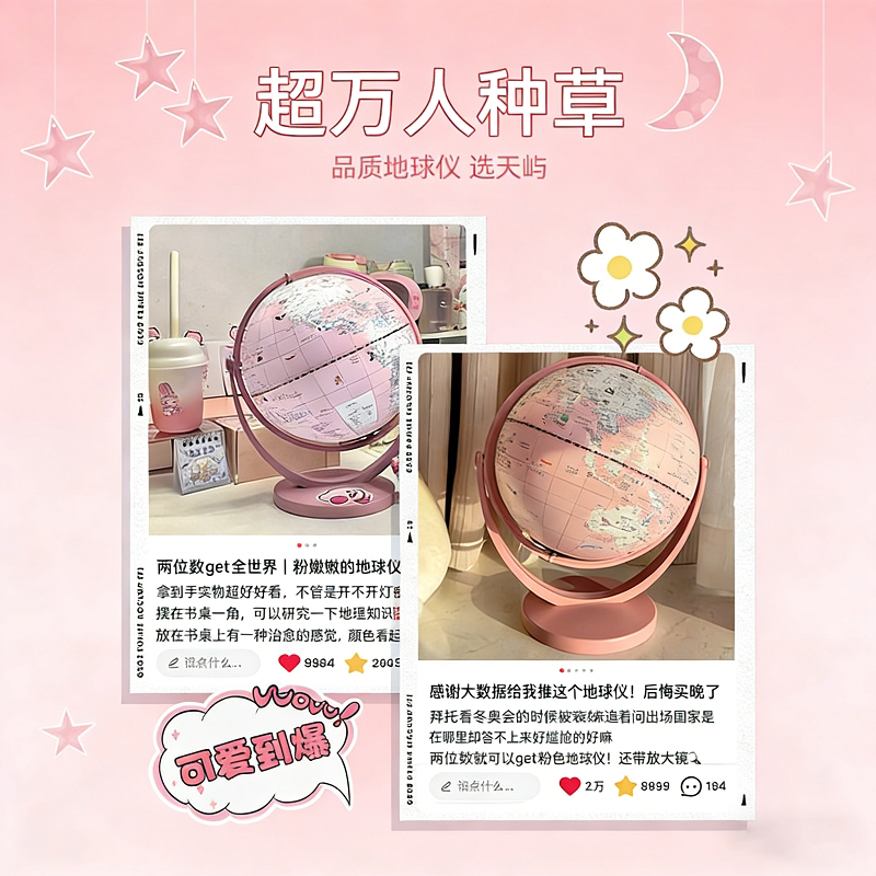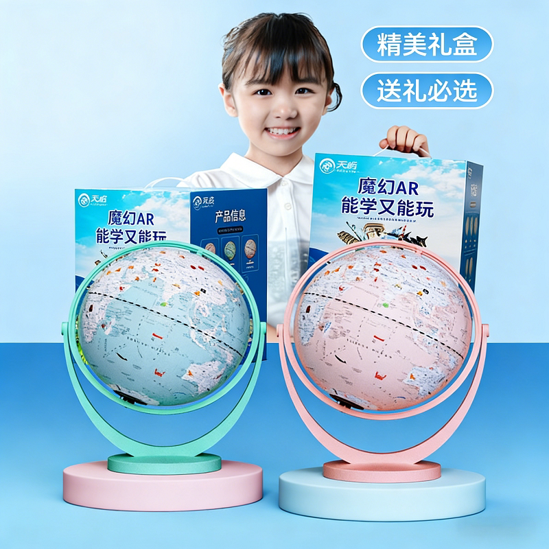 天屿2026智能AR带灯20CM地球仪初中生发光粉色学习高清充电高档儿童启蒙摆件书桌新款
