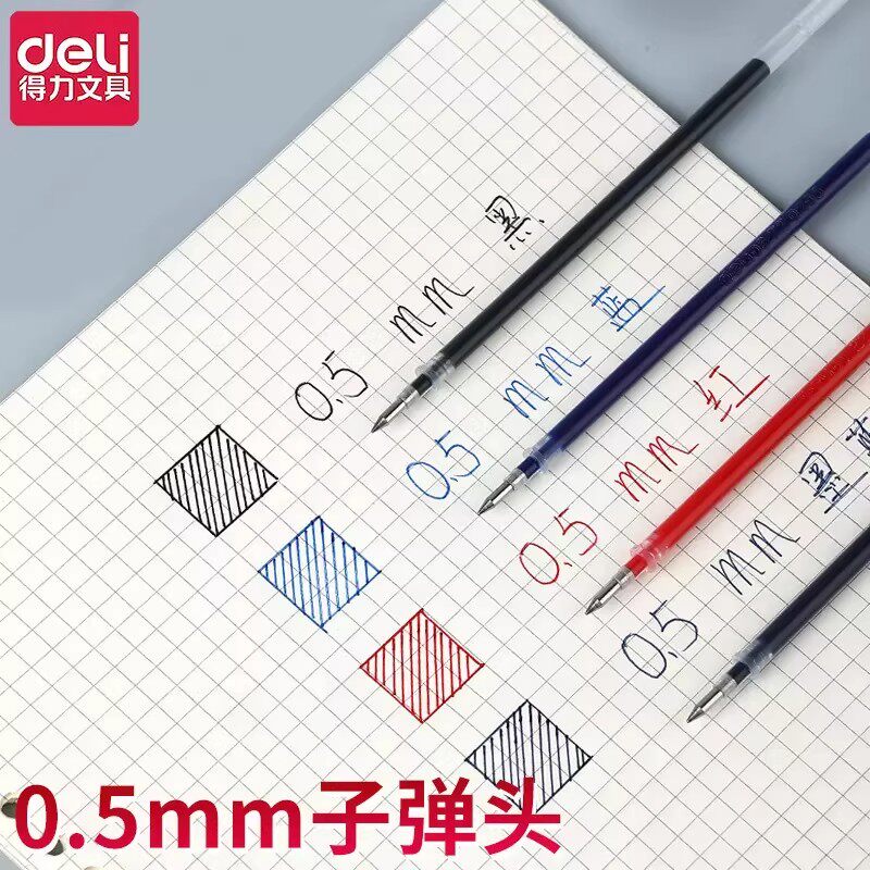 得力中性笔芯子弹头笔芯水笔芯0.5mm半针管中性笔芯黑色红色蓝色笔芯书写笔水笔芯普通中性笔芯黑色0.5笔芯