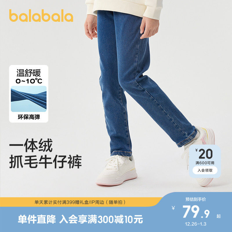 巴拉巴拉童装女童牛仔裤冬装加绒加厚儿童休闲保暖长裤子洋气复古