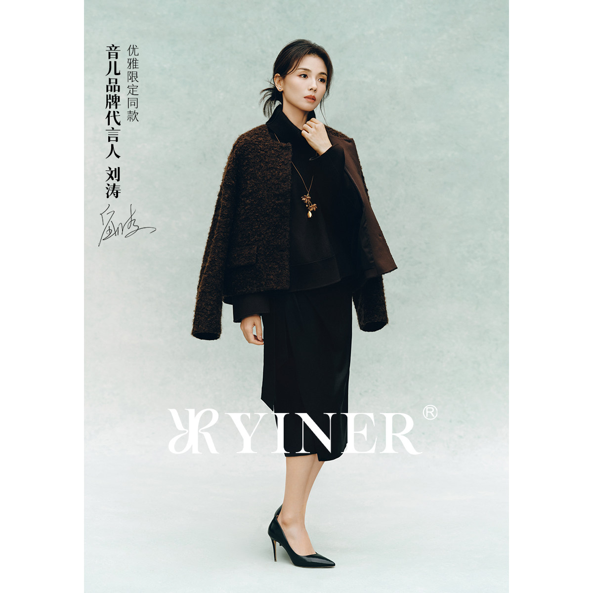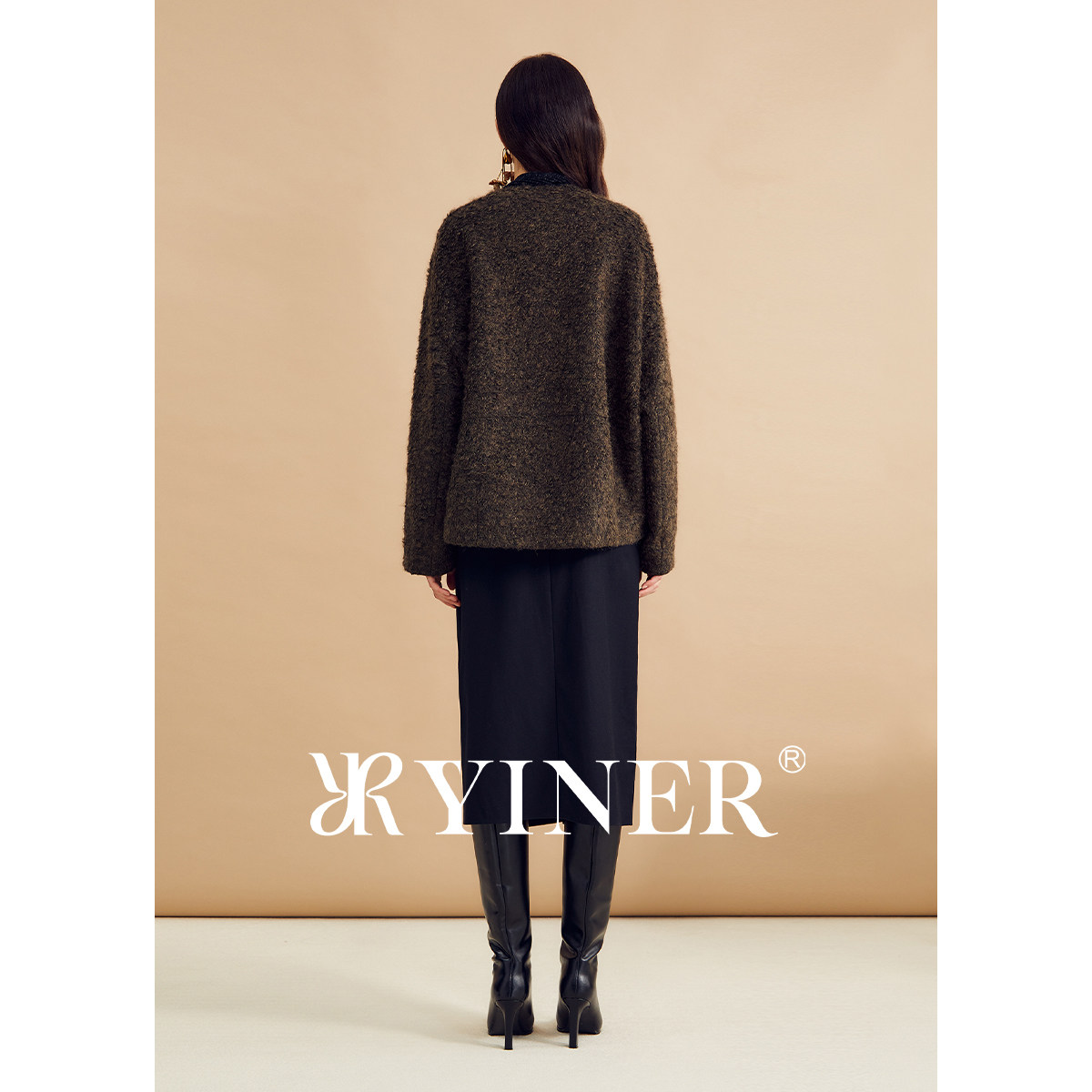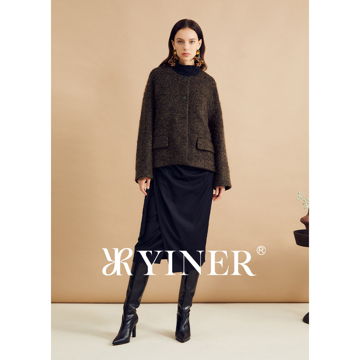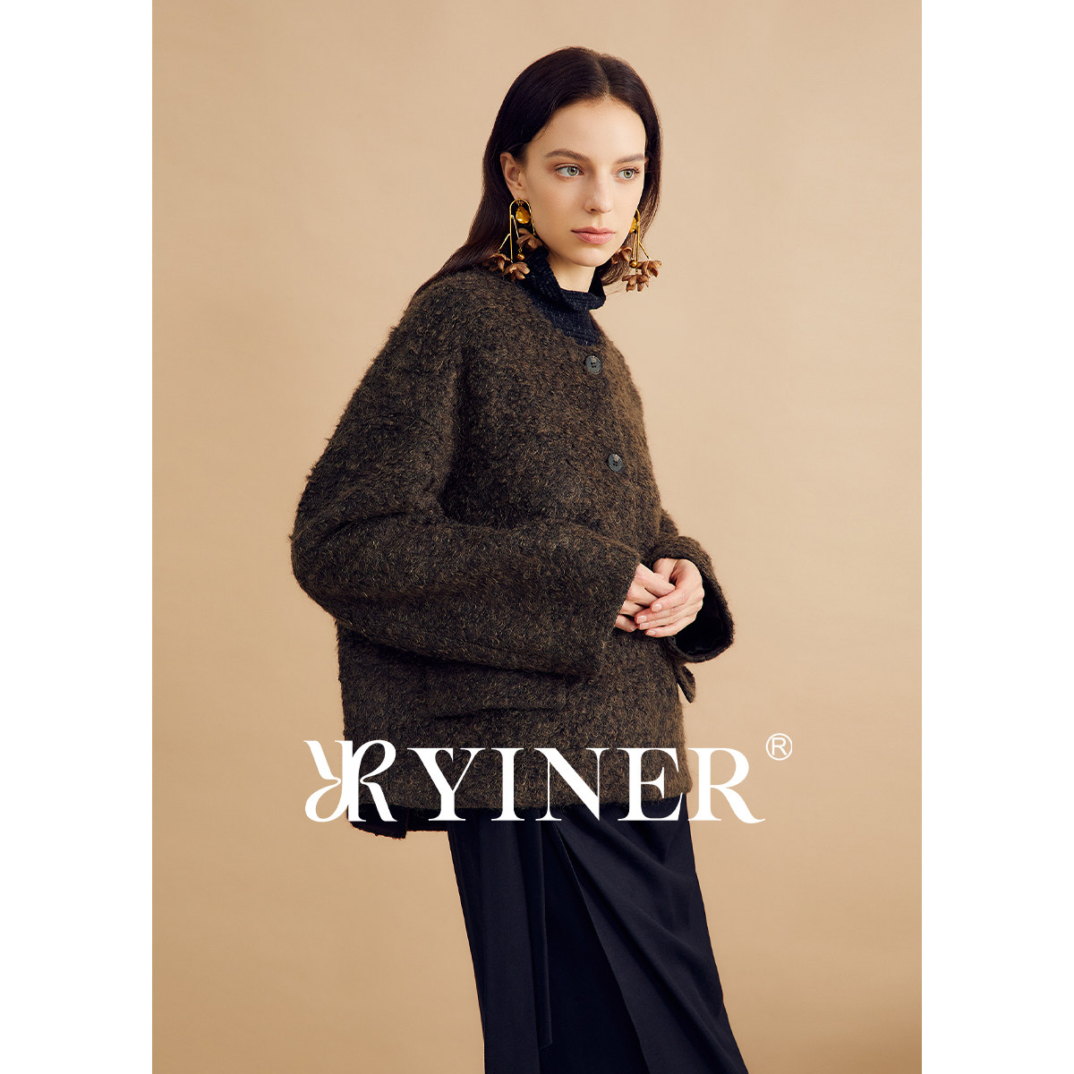 【刘涛同款】YINER音儿冬季优雅圆领马海毛混纺短外套