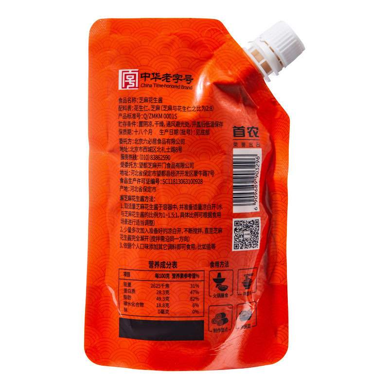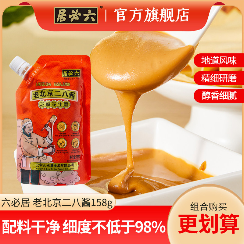 六必居二八麻酱正宗老北京味火锅蘸料热干面酱芝麻花生酱158g*3袋