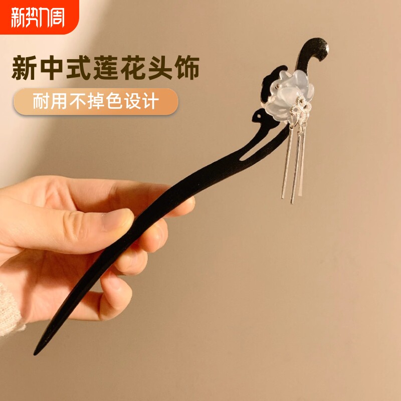 日常檀木流苏发簪簪子女高级感盘发新中式通勤古风汉服头饰双面