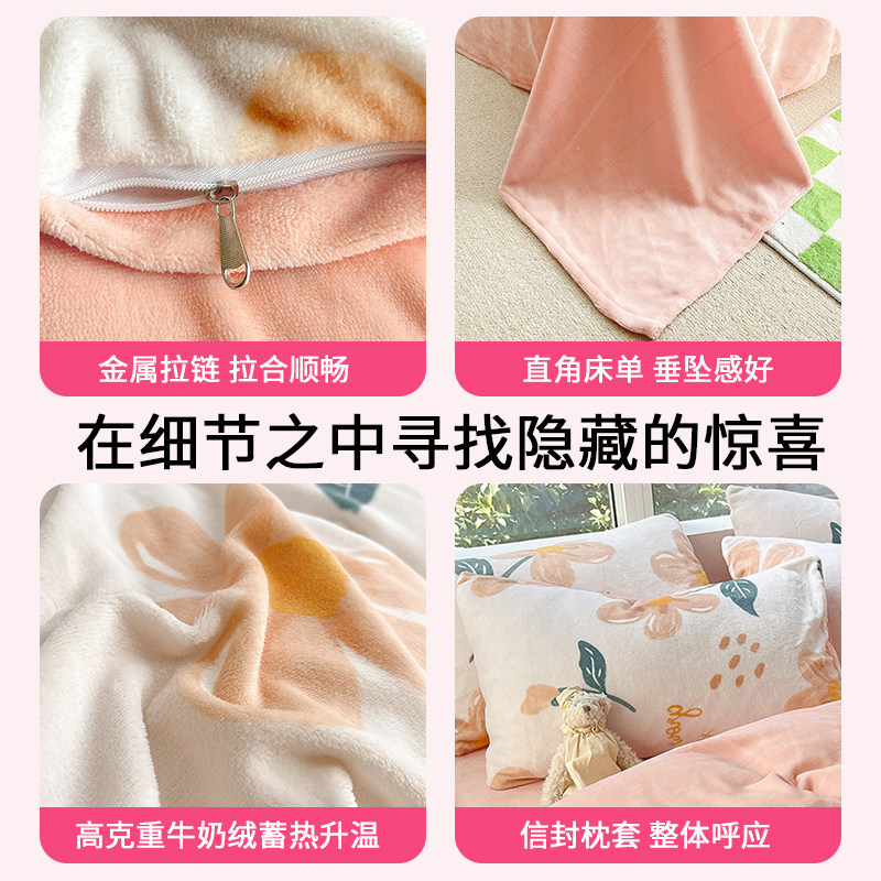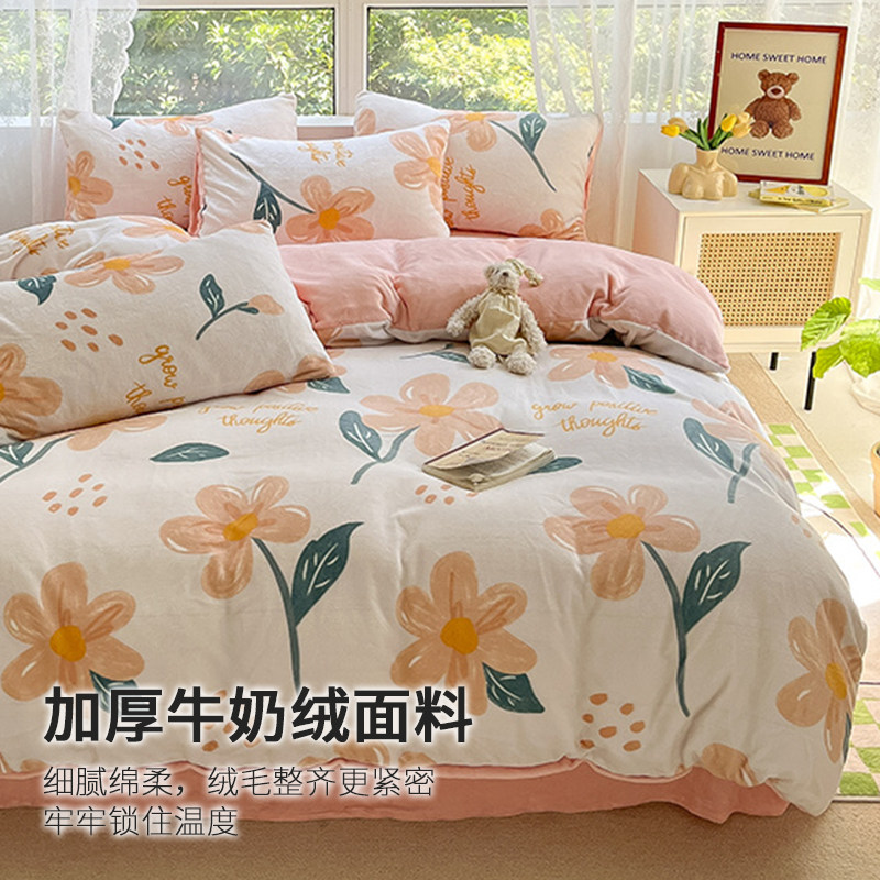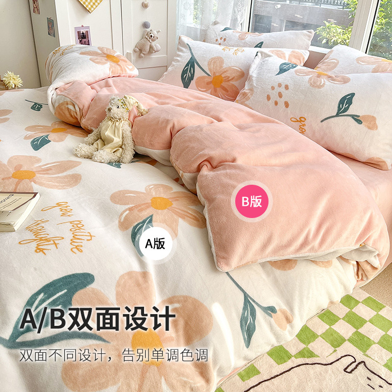 秋冬季加厚四件套牛奶绒被套床单双面加绒被罩床笠学生宿舍三件套