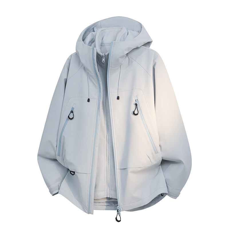 骆驼山海夹克加绒外套男秋冬款工装户外硬壳登山服防泼水旅行服女