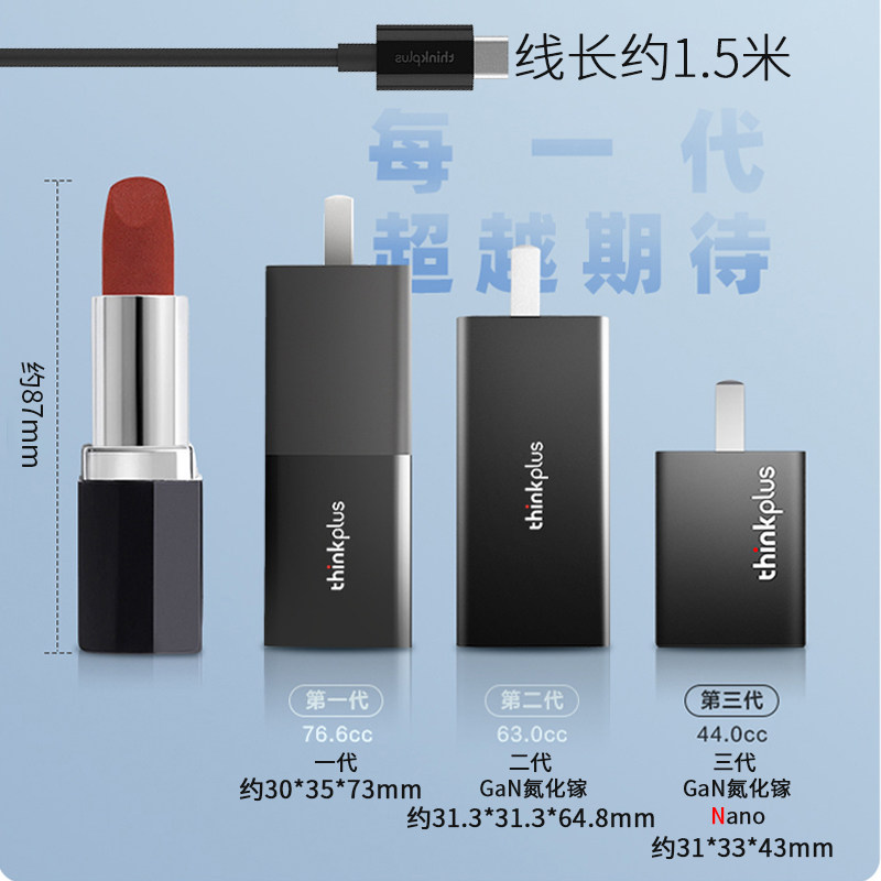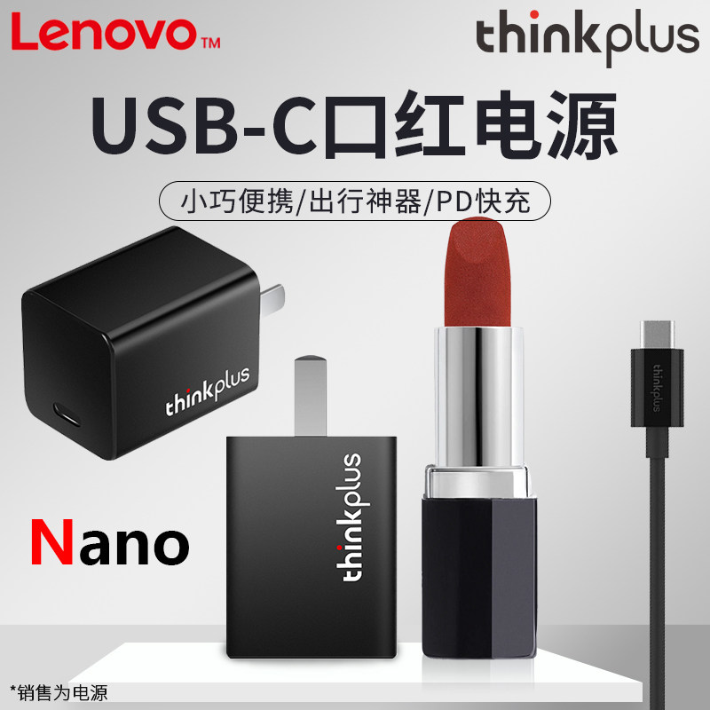 Lenovo联想Type-C 65W笔记本三代口红电源Nano氮化镓便携旅行PD快充电器20V3.25A电源适配器苹果手机ipad平板