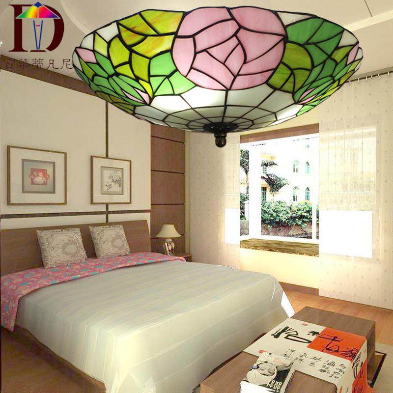 家装灯饰田园风格蒂凡尼彩色玻璃玫瑰花餐厅酒店吸顶灯